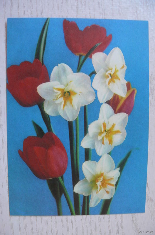 Костенко Г., Цветы; 1973, чистая, ДМПК (тюльпаны, нарциссы)
