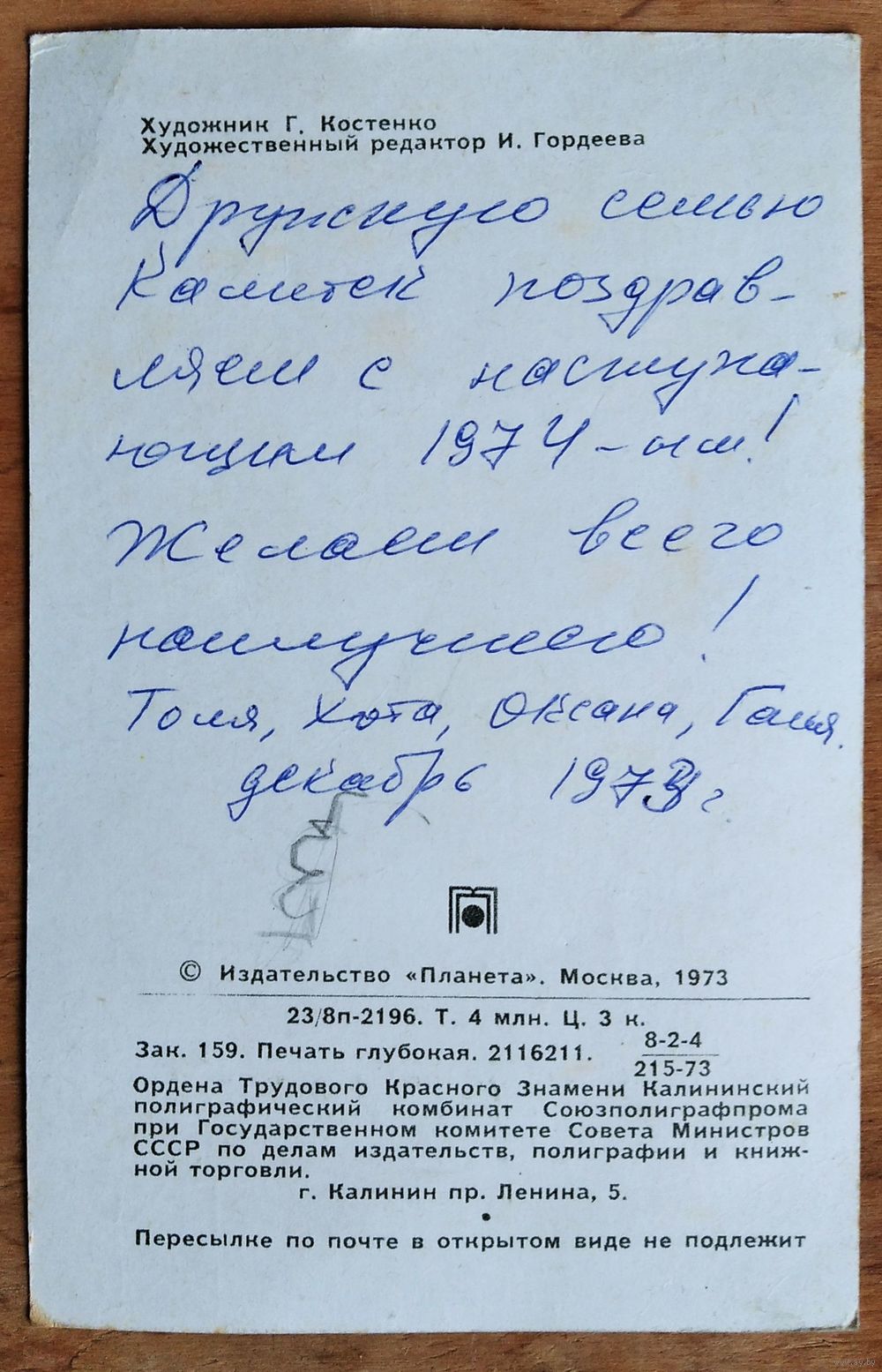 Костенко Г. С Новым Годом! 1973 г. Подписана.