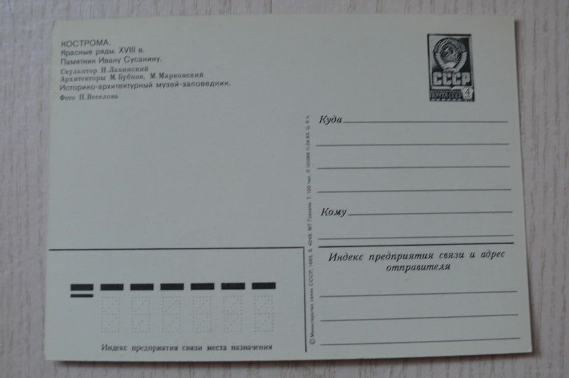 Кострома. Памятник Сусанину; 1983, чистая, ДМПК.