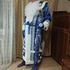 Сценический, качественны костюм деда Мороза на размер 54-56, рост 176-182 на утренник на корпоратив. Отличный, интересный и синего цвета, а это не красный. Из дефектов, если таковыми можно назвать, отпавшие звездочки на ткани, которые крепились на клею, как на фото показано. Палка -посох в подарок!