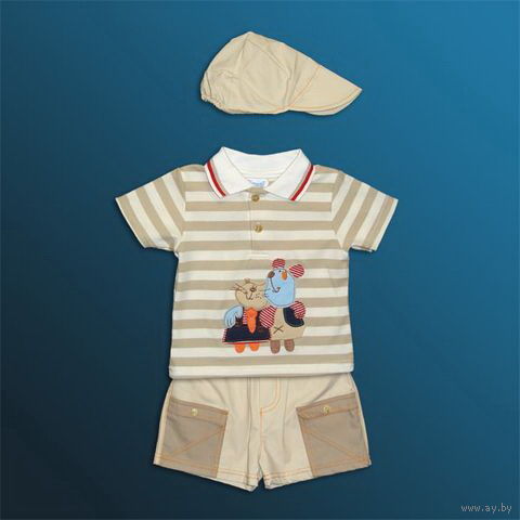 Костюмы для мальчика трех-предметный, хлопок, размер 3-6 мес, новый в упаковке!