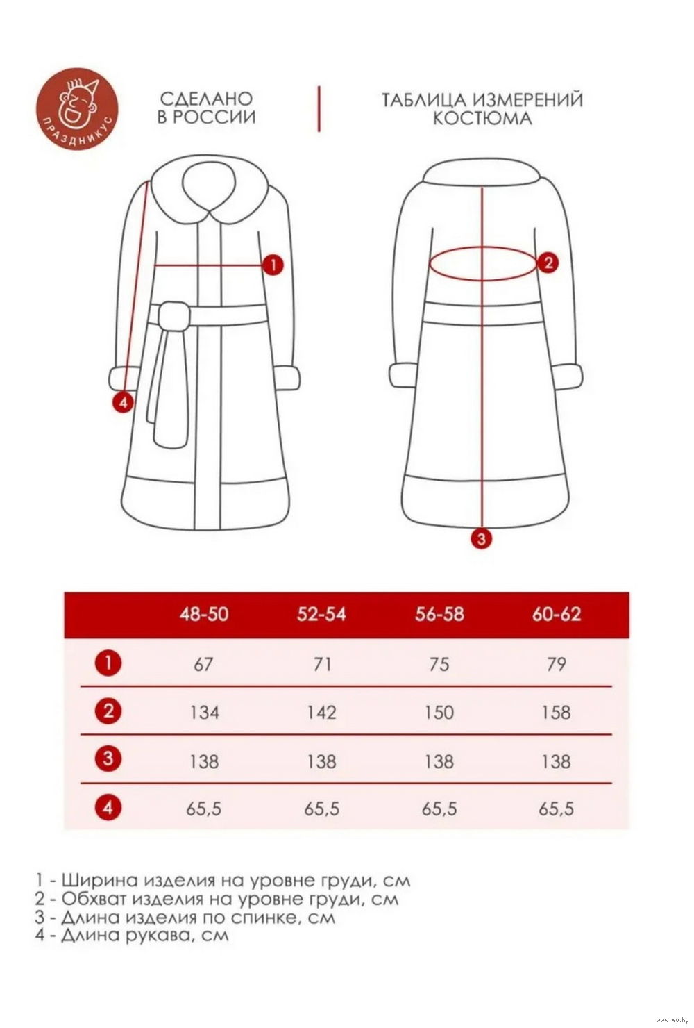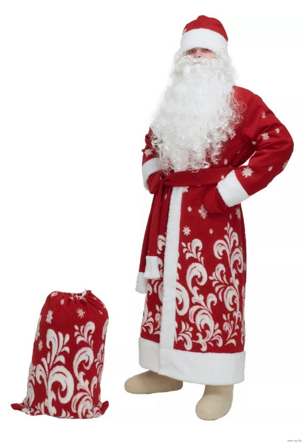 1)Костюм Деда Мороза, как новый, состав: искусственный мех 20%, пан 80%, цвет бордовый, р.60-62, в комплект входит шапка-пояс-варежки-мешок-борода-парик. Качество отличное.