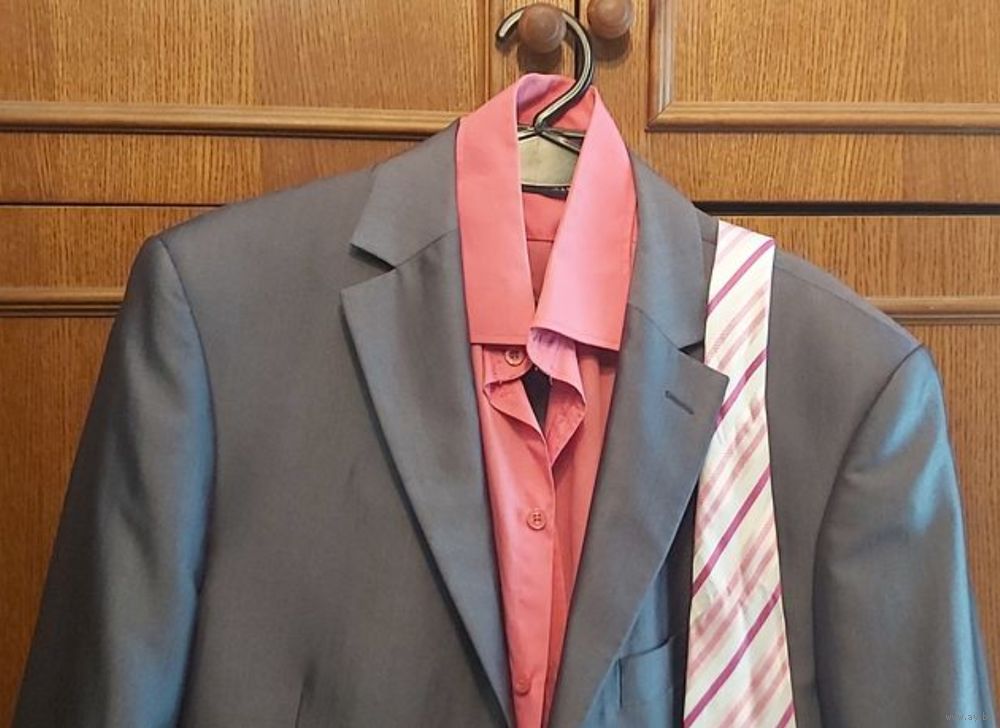 Праздничный Комплект Костюм Мужской Коминтерн (40) стального оттенка с розовой рубашкой сорочкой Надэкс (10) и бело - розовым галстуком (20)