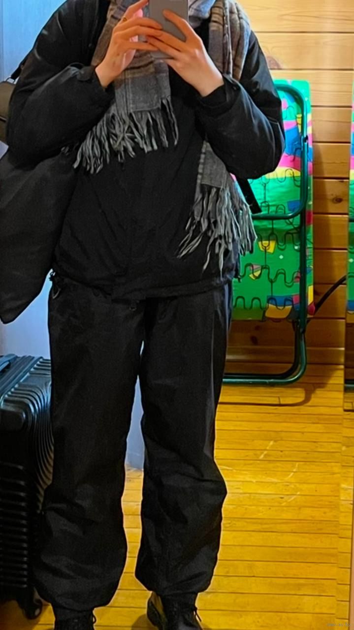 | Горнолыжный костюм черный: куртка и штаны + перчатки (фиолетовые) Под низ: леггинсы м кофта (вроде как термо), подшлемник (серый) Размер: s Состояние: б/у, хорошее | |