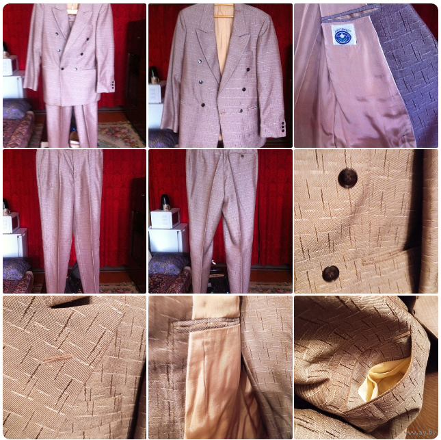 Костюм На рост 172 см + - , серебристо-коричнево-серый оттенок , реальный цвет костюма который не на красном фоне а на сделанных 4-ёх фото в упор . Галстук Ив Сен-Лорен Бути Элит 100 % шёлк . Всё Белпочтой