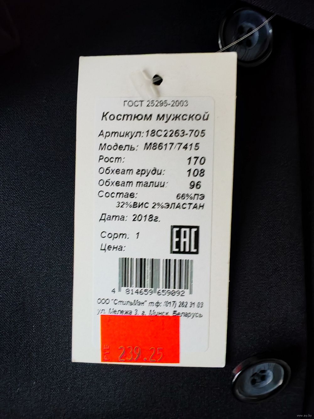 КОСТЮМ МУЖСКОЙ. НОВЫЙ. РАЗМЕР: 54. РОСТ: 170.