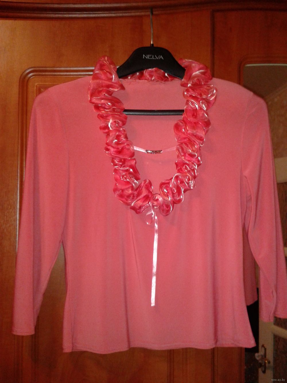 Женский костюм кораллового цвета с юбкой. размер 46-48 замеры в см верх: по груди 43 см по спине 52 см рукав 3/4 длинна 45 см низ: ширина по поясу 40 см длинна по бокам макс. 77 см по средн. 52 см Хорошее состояние, в нескольких местах небольшие дефекты. см. фото. Стоимость пересылки 4 руб.