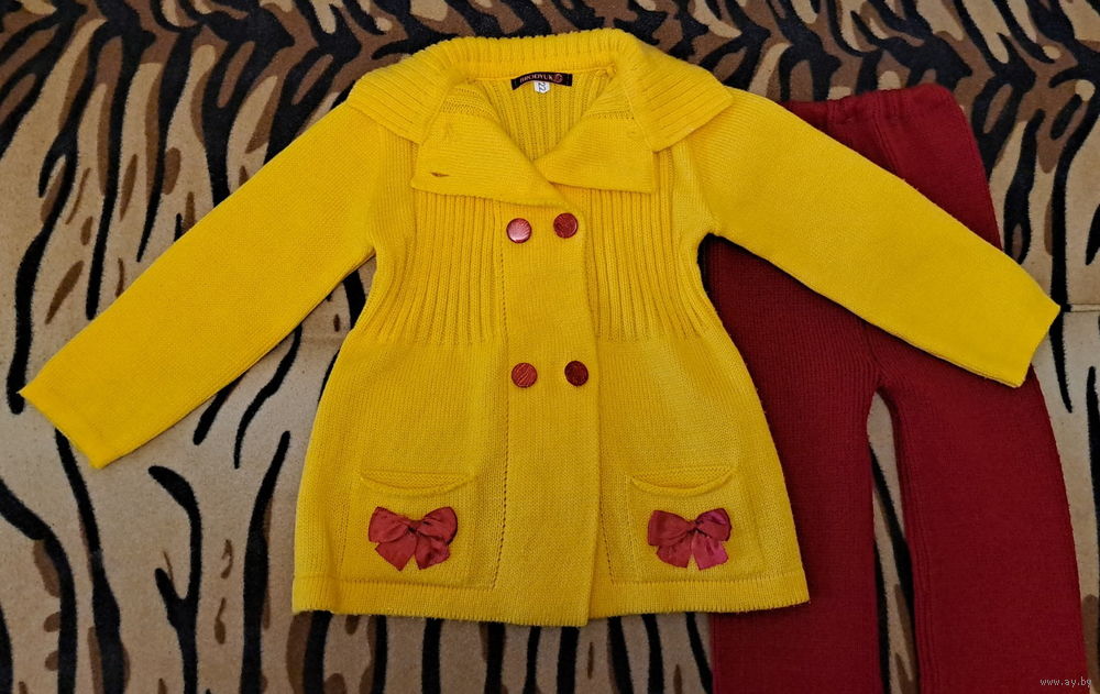 Костюм желто-красный на 5-6лет, р.122 , вязаный, б.у в отличном состоянии.