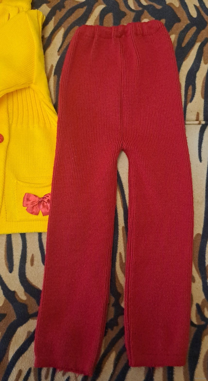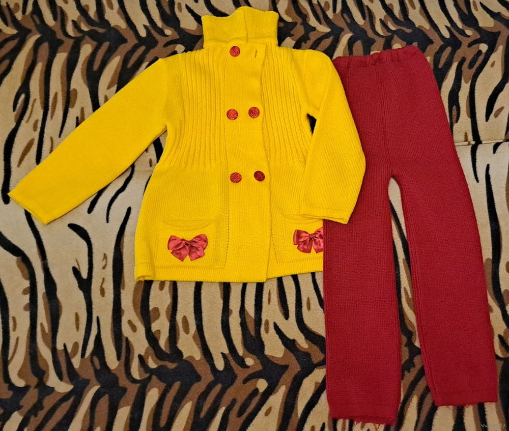 Костюм желто-красный на 5-6лет, р.122 , вязаный, б.у в отличном состоянии.