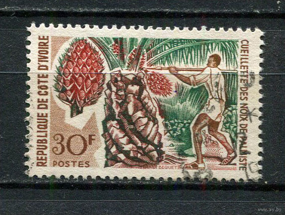 Кот-д 'Ивуар - 1967 - Сбор пальмовых ядер 30Fr - [Mi.313] - 1 марка. Гашеная. (Лот 38HS)-TG3P11