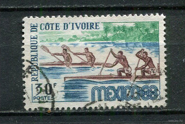Кот-д 'Ивуар - 1968 - Летние Олимпийские игры. Гребля на каноэ и байдарках 30Fr - [Mi.331] - 1 марка. Гашеная. (Лот 26JT)-T25P3