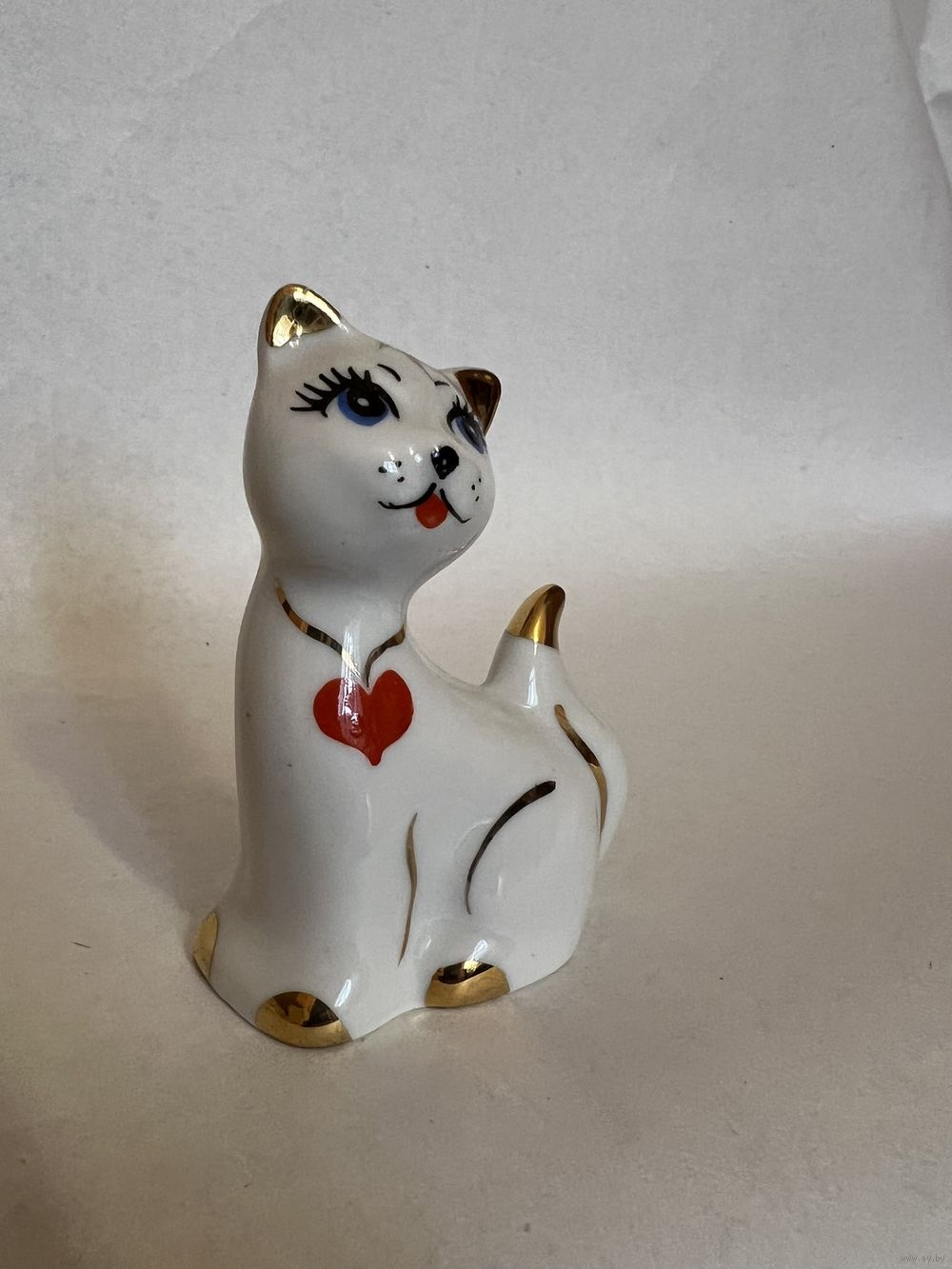 Фарфоровая статуэтка "Кот", высота 7 см, производство Добрушский Фарфоровый Завод (ДФЗ). Почта, европочта.