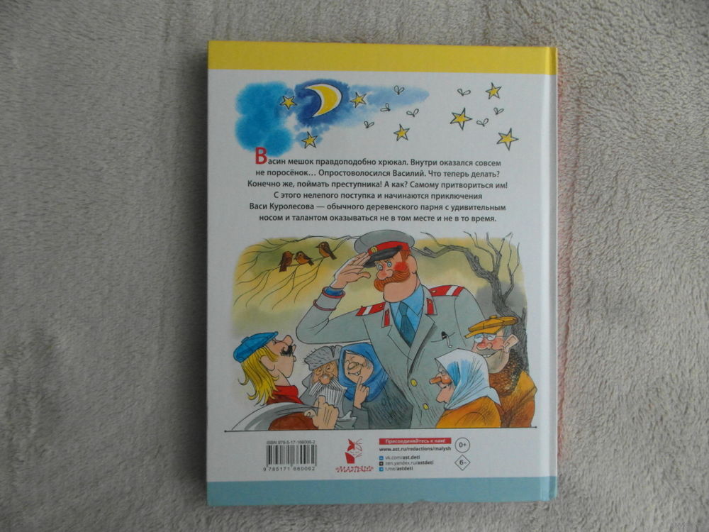 Васин мешок правдоподобно хрюкал. Внутри оказался совсем не поросёнок... Опростоволосился Василий. Что теперь делать? Конечно же, поймать преступника! А как? Самому притвориться им! С этого нелепого поступка и начинаются приключения Васи Куролесова — обычного деревенского парня с удивительным носом и талантом оказываться не в том месте и не в то время.Цветные иллюстрации Чижикова Виктора.. На очень качественной бумаге. Замечательная повесть известного русского писателя Юрия Коваля о курьезных приключениях доброго и доверчивого паренька Васи Куролесова. Вечно ему не везет! То вместо поросят принесет домой в мешке облезлого рыжего пса, то по своей нерадивости угодит в милицию... В его родной деревне Сычи все над ним просто смеются! И вот однажды Васе представился случай доказать, что он - парень смелый, находчивый и решительный, ему все по плечу, даже поймать бандитов. А как Васе это удалось, вы узнаете, прочитав повесть.. А еще в этой книге - рисунки Виктора Чижикова, которого знают и любят все.