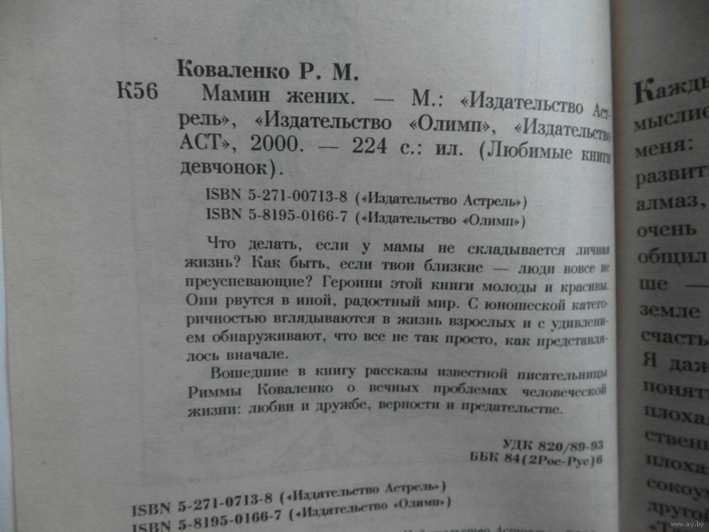 Коваленко Р. Мамин жених. Рассказы.Серия: Любимые книги девочек. М АСТ-Астрель 2000 г.