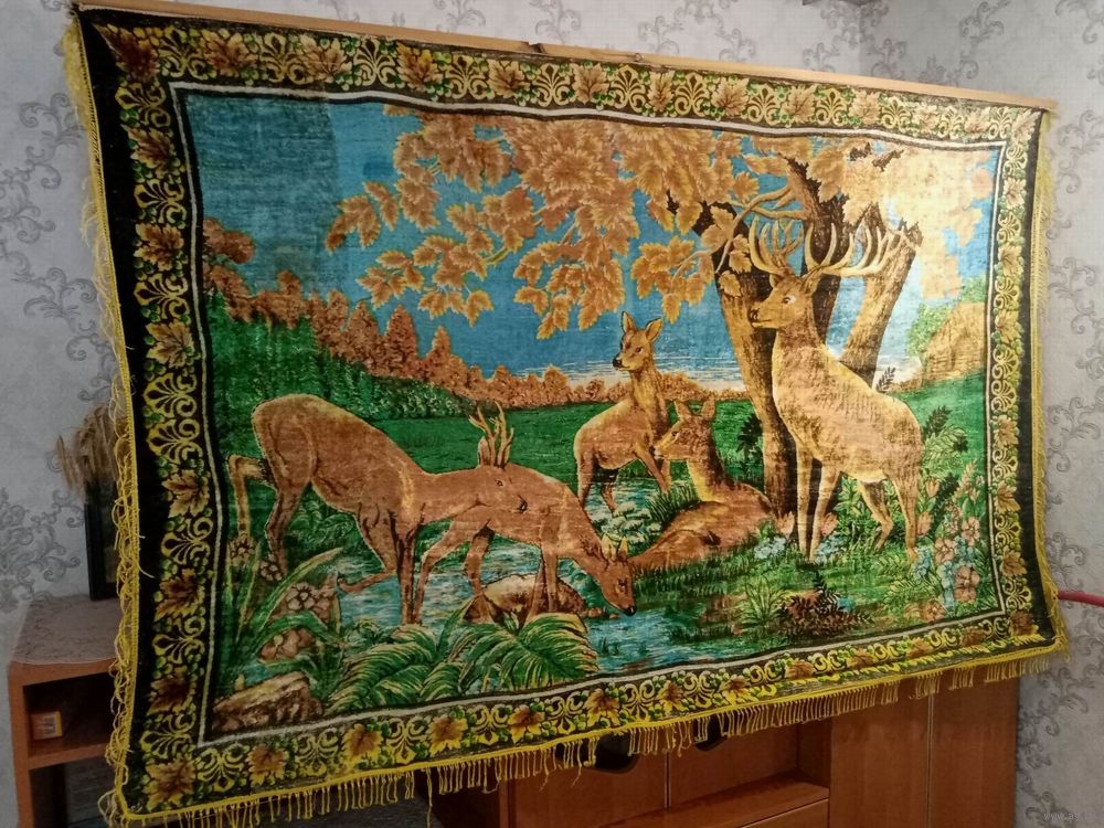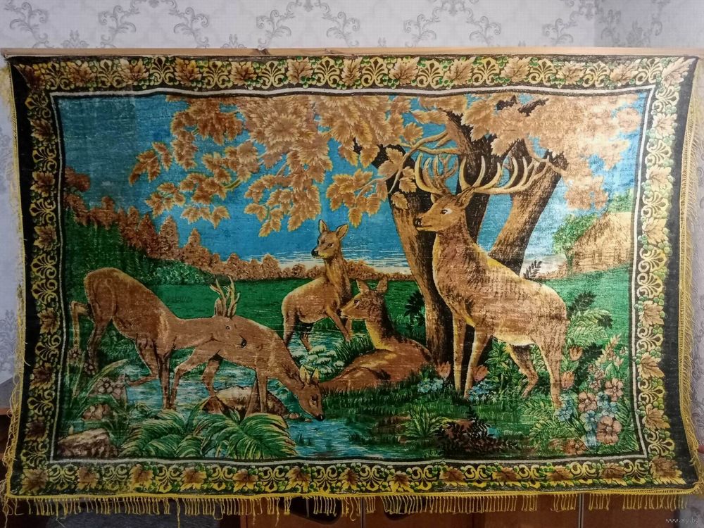 Первые ковры с оленями начали появляться в Германии, а в СССР в 40 годах ХХ века (в качестве трофеев). Само производство в СССР таких ковров запустили в 60 годах прошлого столетия. С такими коврами обращались бережно, их в семьях ценили и частенько передавали по наследству. Сейчас такие ковры являются символом безмятежного советского детства.