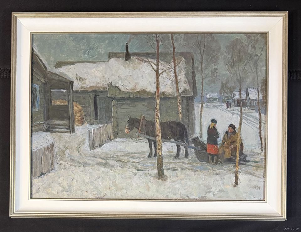 Козловский А.С "Разговор",1985г. Картон, масло. Размер с рамой 60х80 см.
