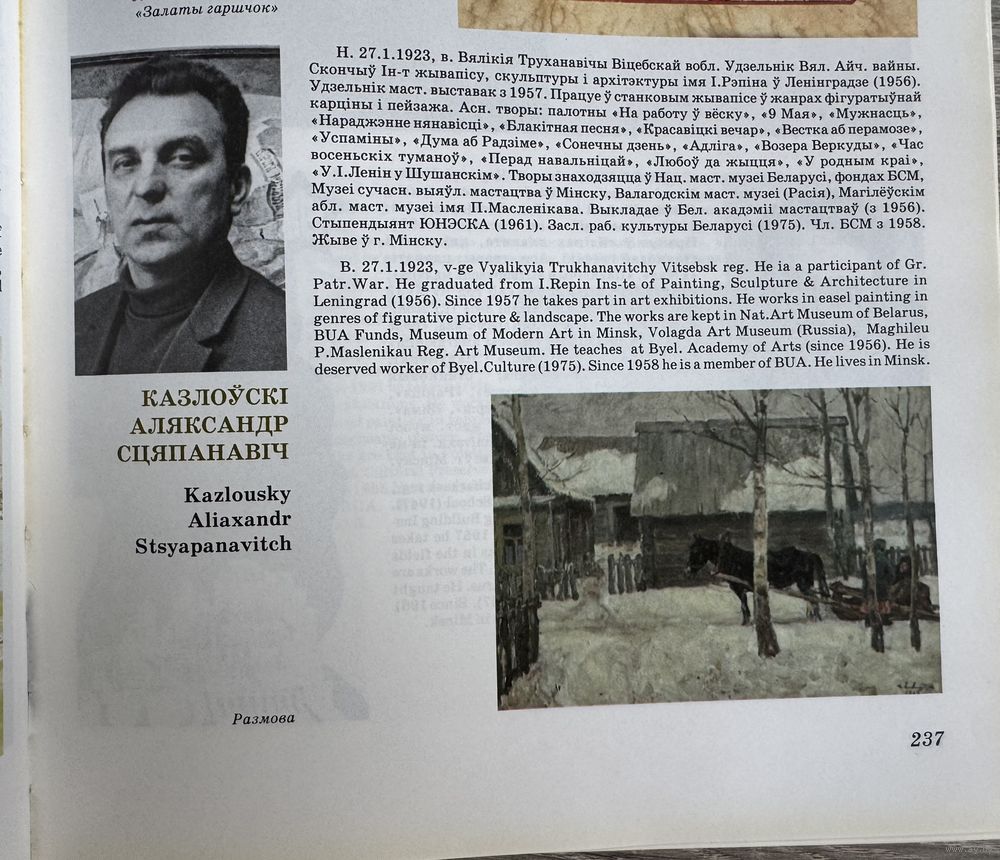 В 1975 г. был удостоен звания «Заслуженный работник культуры Беларуси».