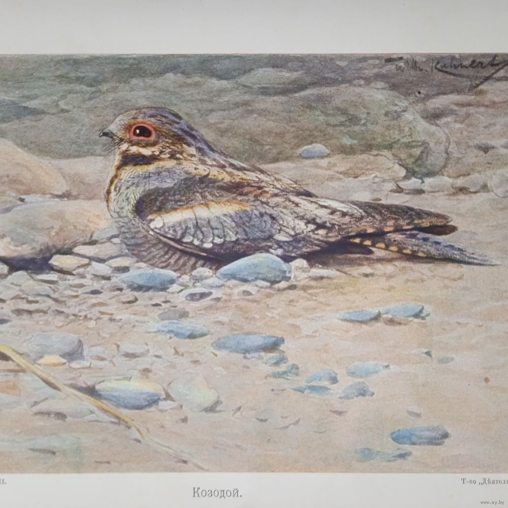 Козодой. Литография СПБ. Энциклопедическая гравюра конец 19века 25х17см. РАСПРОДАЖА КОЛЛЕКЦИИ.