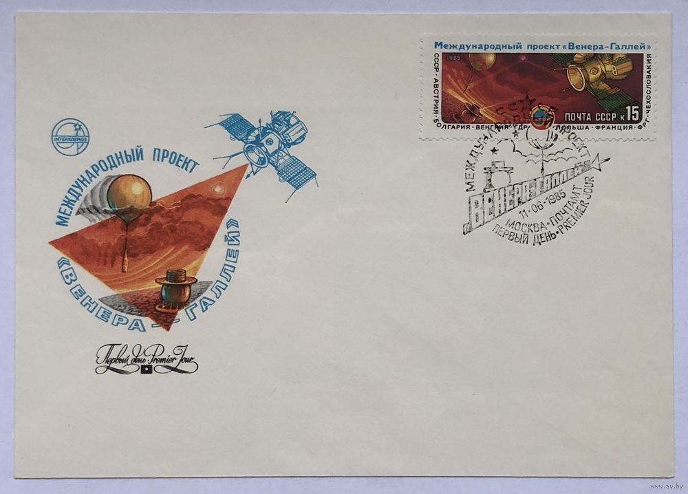 КПД с маркой и печатью Полет советских АМС Вега-1 и Вега-2 международного проекта Венера - комета Галлея 1985