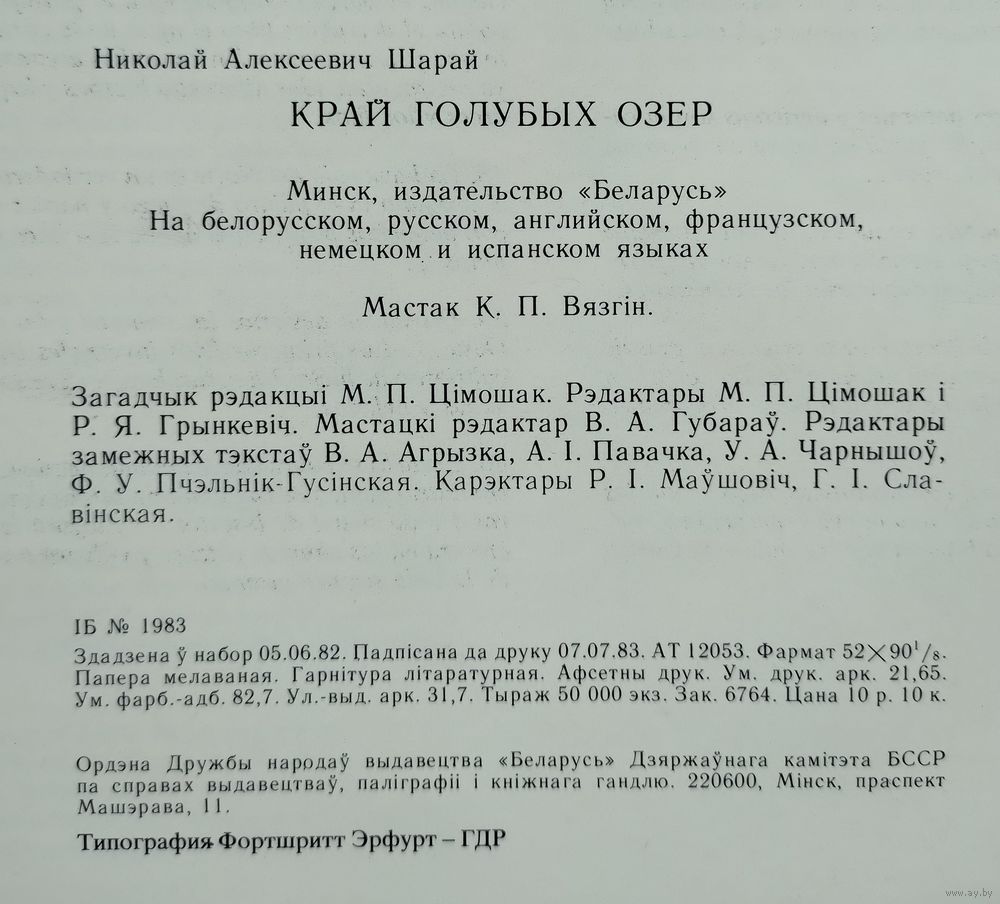 Шарай М. Край блакiтных азёр. Мiнск, Беларусь, 1983 г., 200с. Твёрдый переплёт, увеличенный формат.