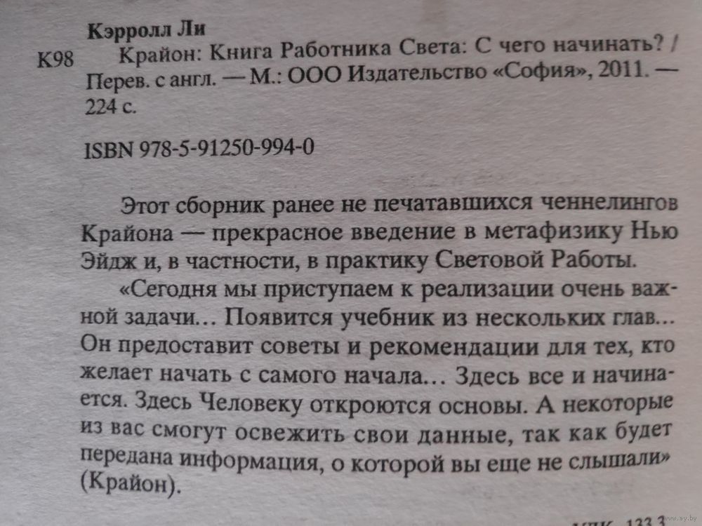 Этот сборник ранее не печатавшихся ченнелингов Крайона - прекрасное введение в метафизику Нью Эйдж и, в частности, в практику Световой Работы. "Сегодня мы приступаем к реализации очень важной задачи… Появится учебник из нескольких глав… Он предоставит советы и рекомендации для тех, кто желает начать с самого начала… Здесь все и начинается. Здесь Человеку откроются основы. А некоторые из вас смогут освежить свои данные, так как будет передана информация, о которой вы еще не слышали" (Крайон).