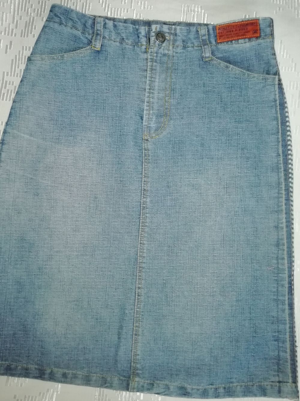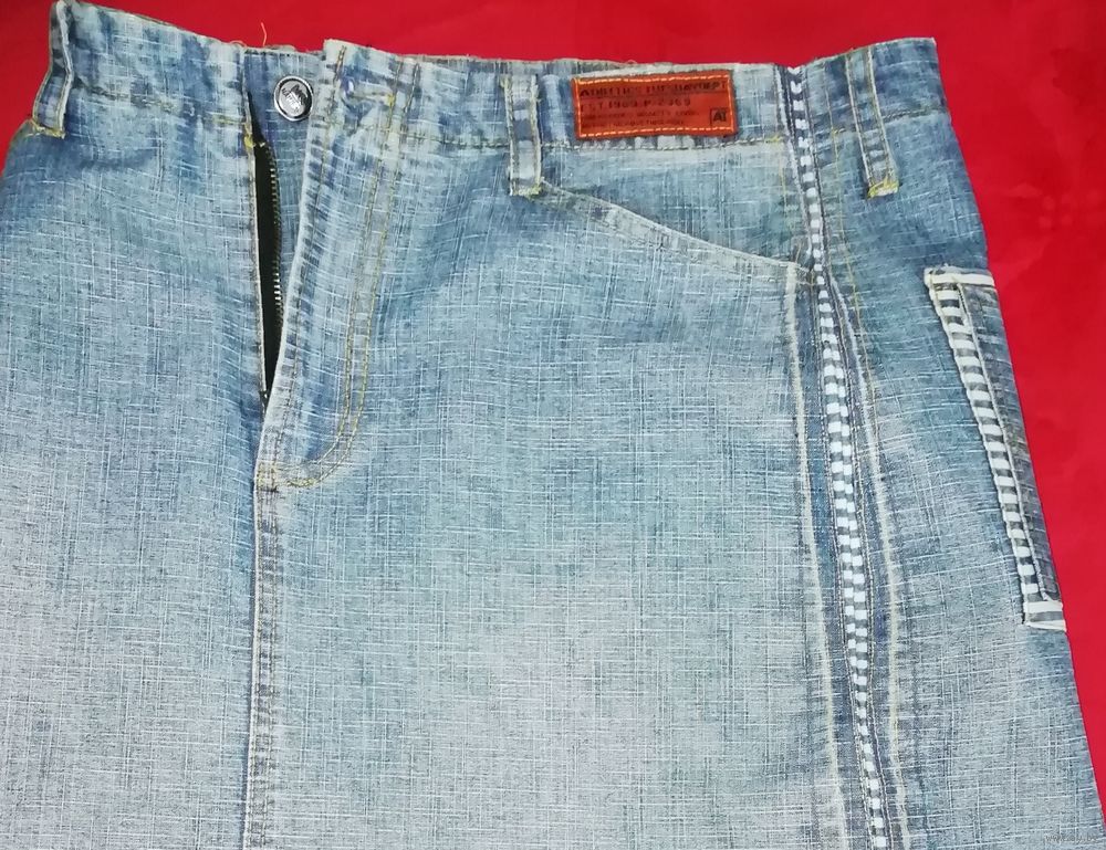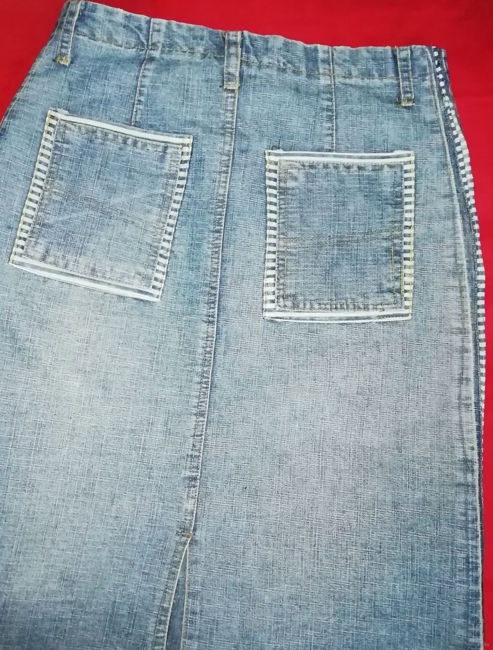 | Стильная юбка из светлого джинса хорошей текстуры, необычно оригинальная отделка полоской. Талия обхват 79-80,длинна юбки 59-60см. | |