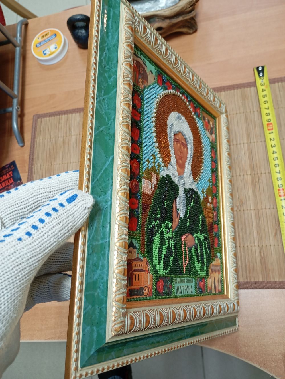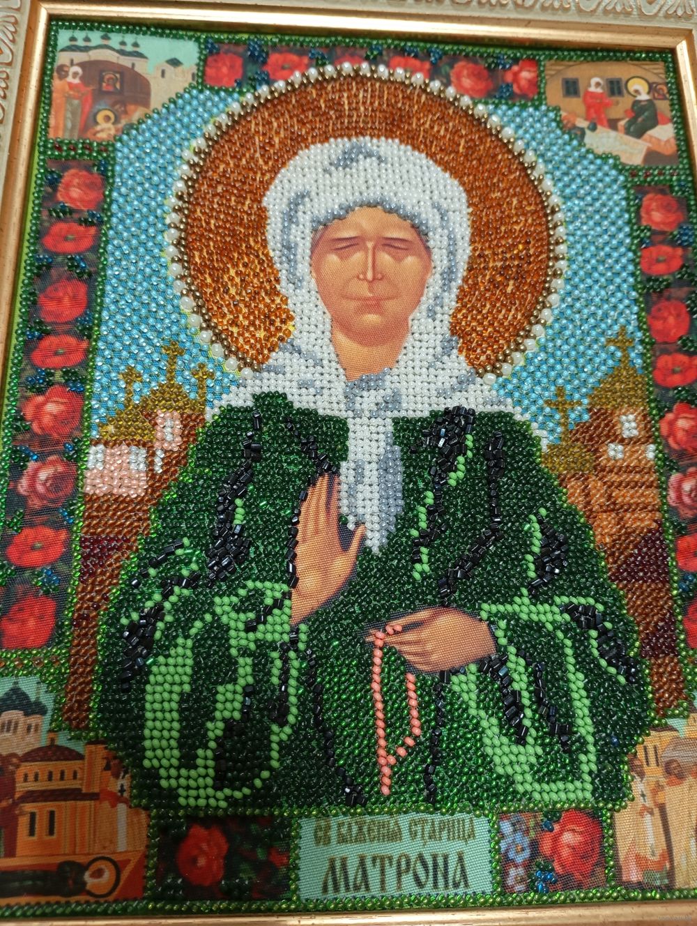 Красивая икона,ручной работы из бисера,Блаженная Матрона!Размеры:325*280*22 мм