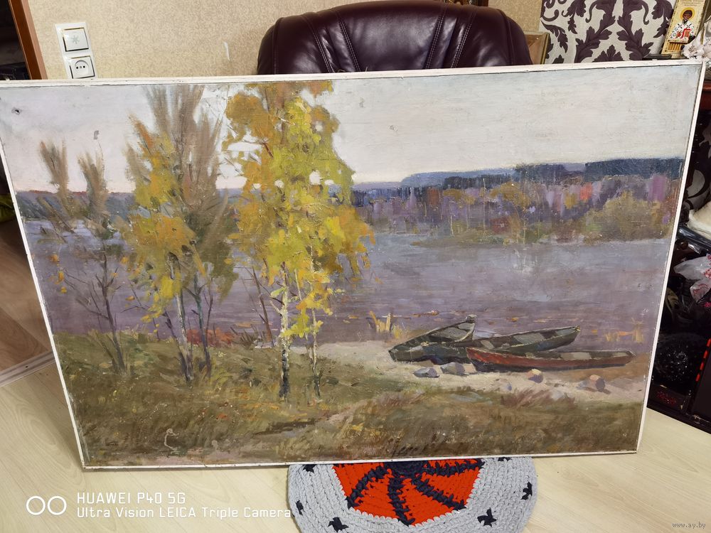 Красивая интерьерная картина холст масло Осенние воды 137см на 97см самая привлекательная цена трёхдневный аукцион