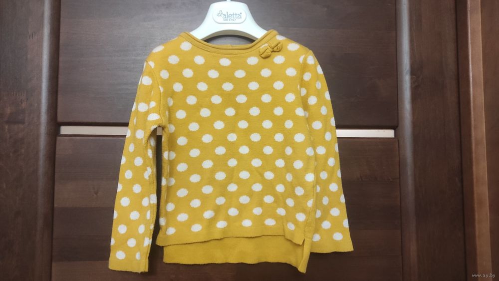 Красивая кофта на рост 92-98 см. В очаровательный горошек. Длина сперели 34 см, сзади 37 см, ПОгруди 31 см, длина рукава 32,5 см. Хорошее состояние для б/у вещи.