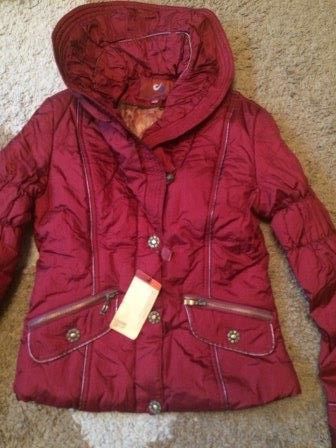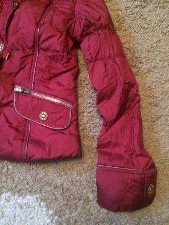 Красивая куртка на девочку на 42 р 160 см. Ярко-бордовая перламутровая куртка с очень красивым воротником, новая, была на витрине, нужно только простирнуть. Длина 56 см длина рукава 60 см, ПОгруди 43 см. Хорошо сидит на фигуре.