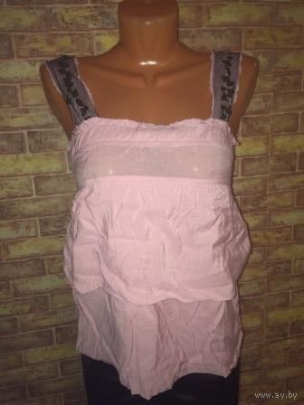 Красивая романтичная блуза от Kira Plastinina из жатой ткани на 44 размер. Красивые бретельки украшены пайетками. Смотрится потрясающе.