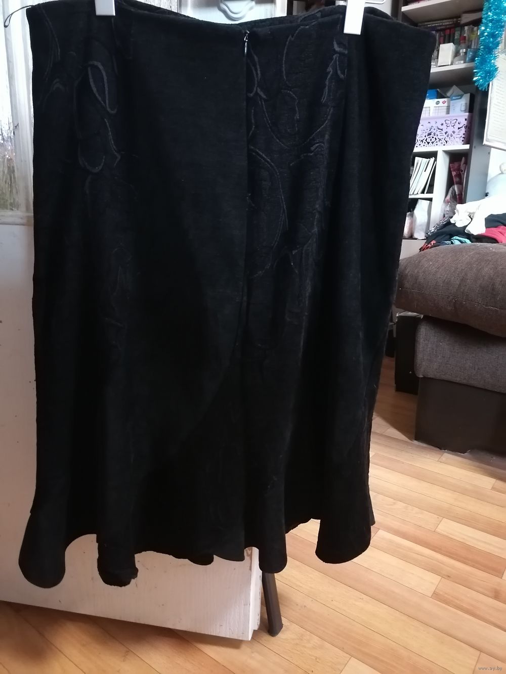 Красивая штроксовая юбка, на подкладке, на р-р 48-52, цвет практически черный, клинья из ткани с вышивкой красиво чередуются. ПОТ 48-50см, ПОБ 62см, длина 70-73см, красивый фасон, ткань плотная. Без дефектов, недорого.