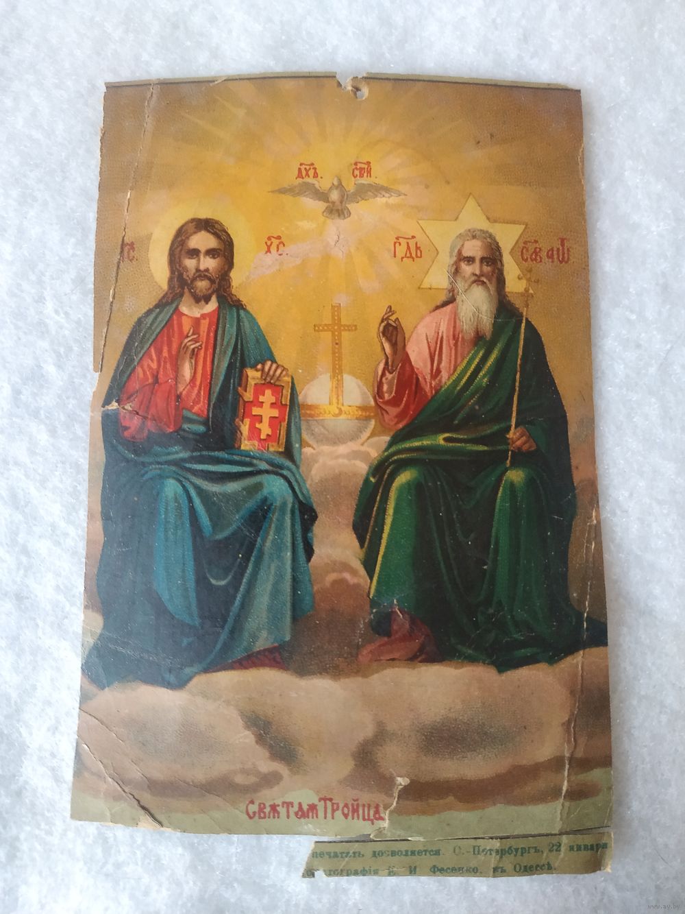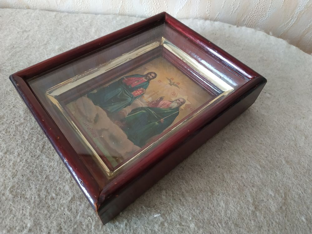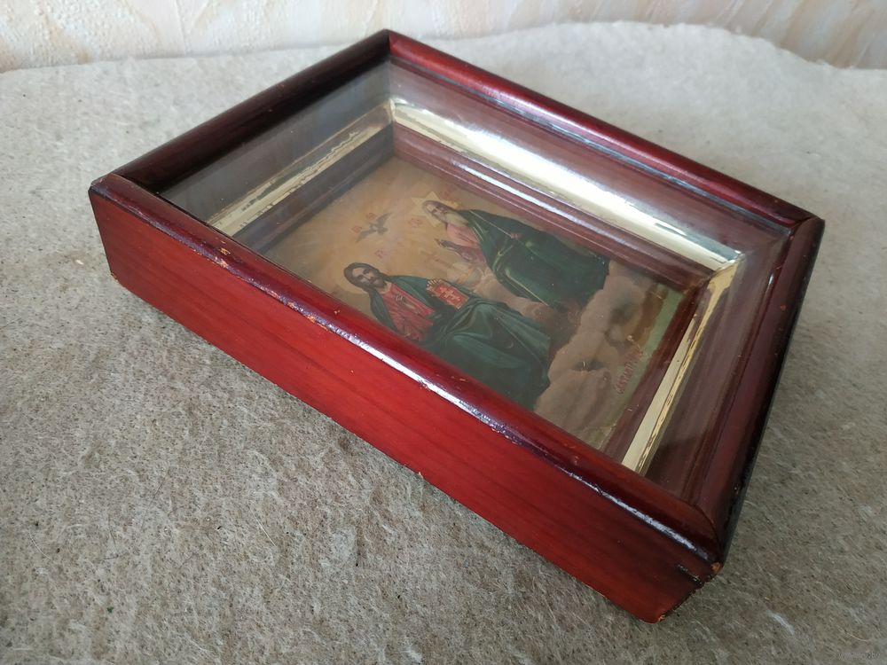Красивая старинная икона "Святая Троица Новозаветная". Российская империя, 1892 год.