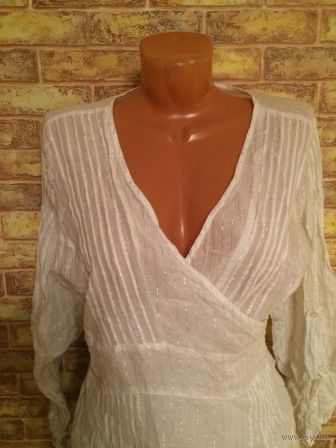 Красивая, тоненькая блуза Benotti на 46-50 размер на запах из натурального хлопка с металлической ниткой, отличного качества, очень мягкая и приятная на ощупь. Смотрится интересна на фигурке.