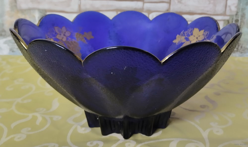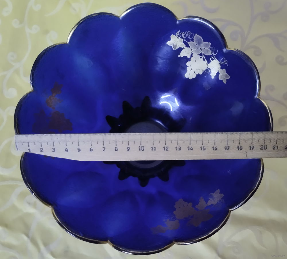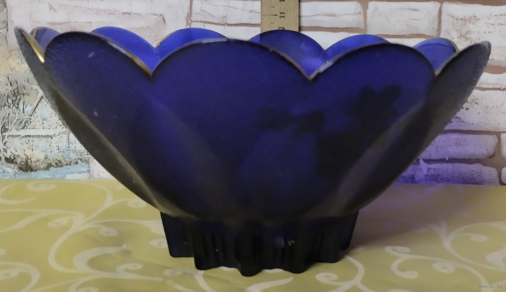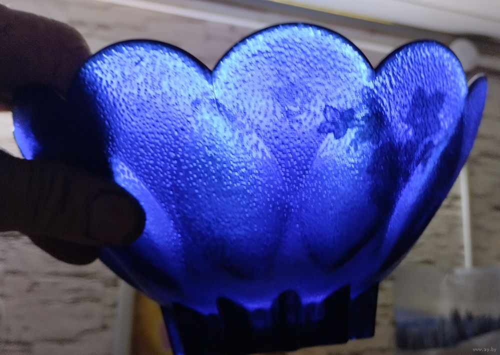 Красивая ваза синего цвета-конфетница с внутренним ресунком (виноград)