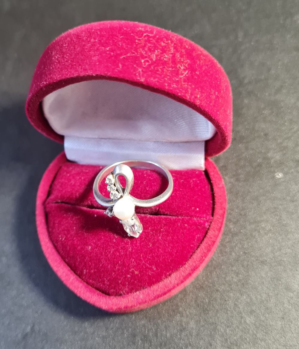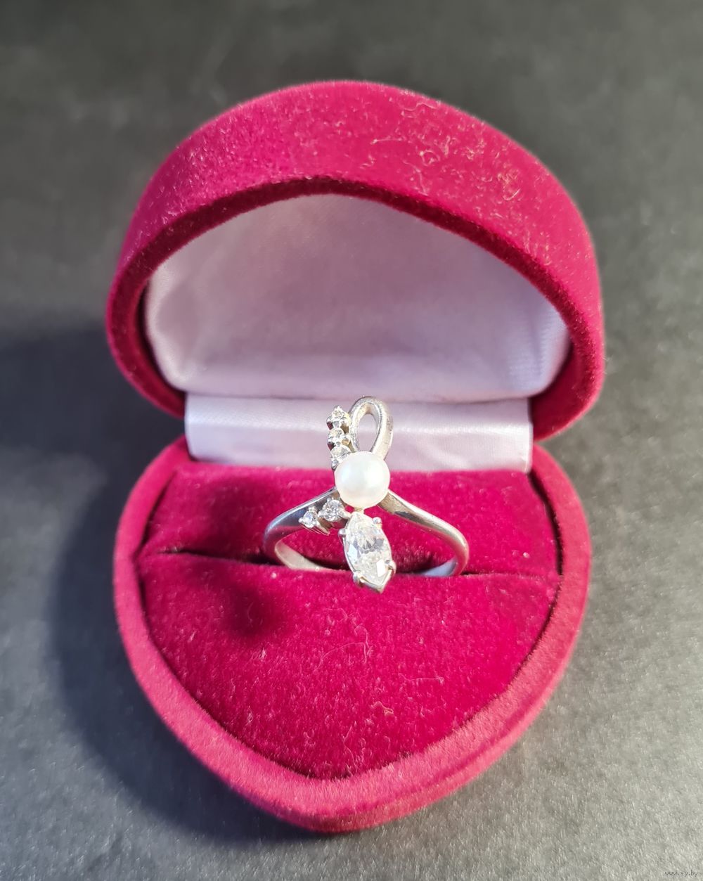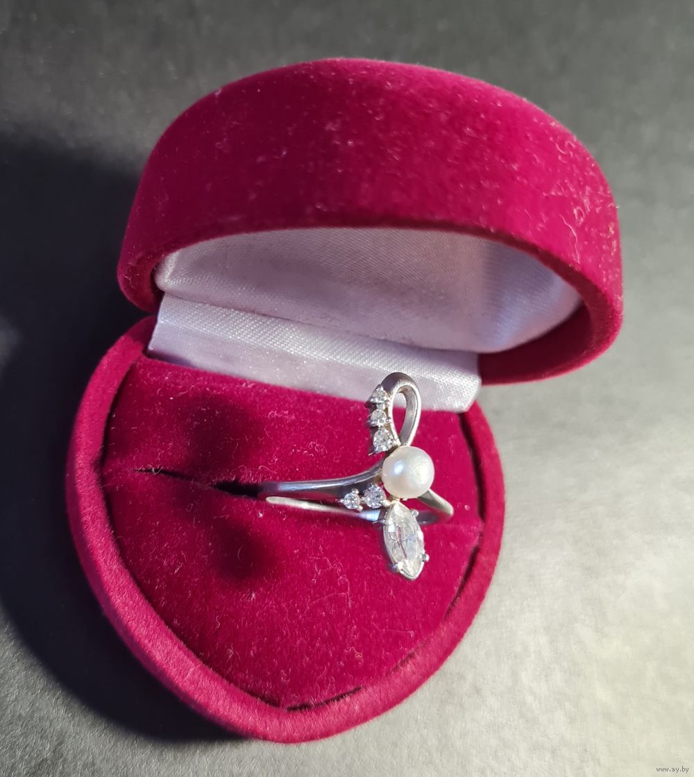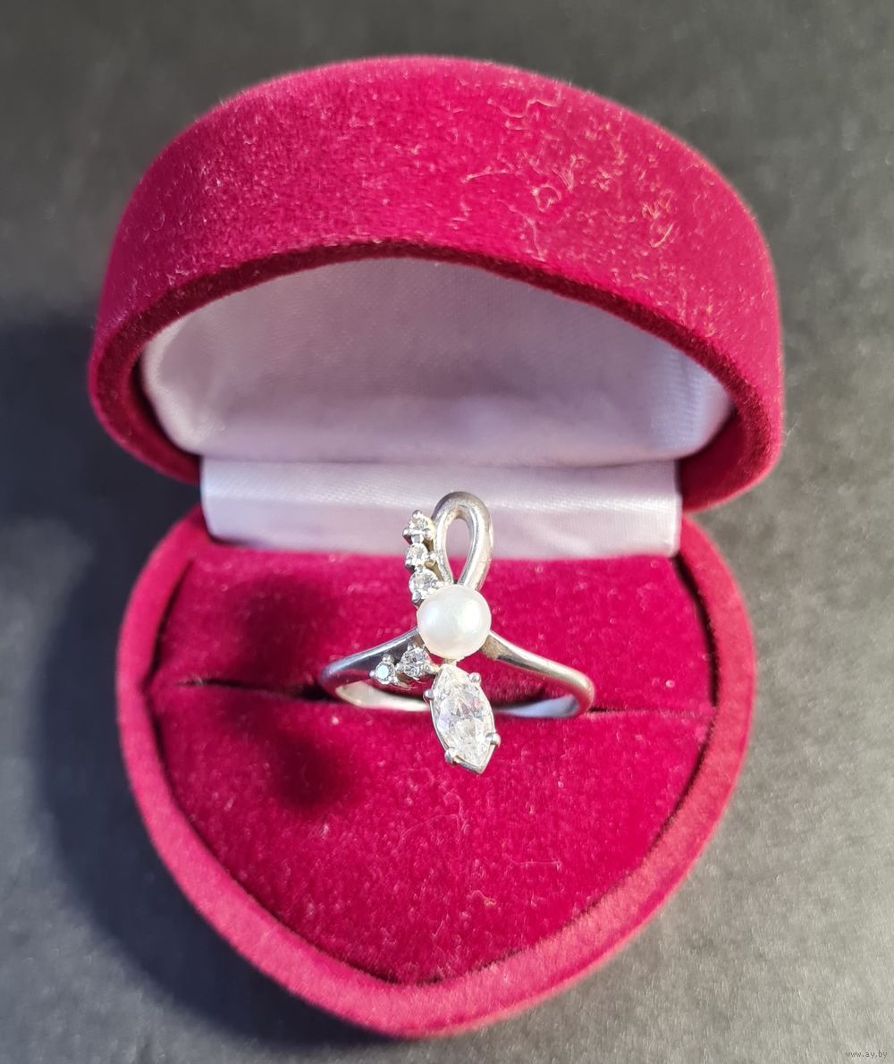 Красивое кольцо с жемчугом серебро 925, лот#11, С РУБЛЯ! МНОГО ЛОТОВ С РУБЛЯ БЕЗ МЦ!
