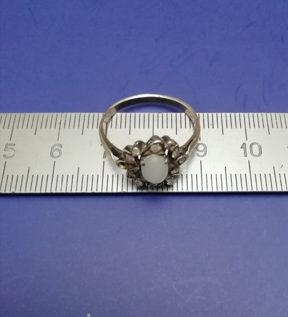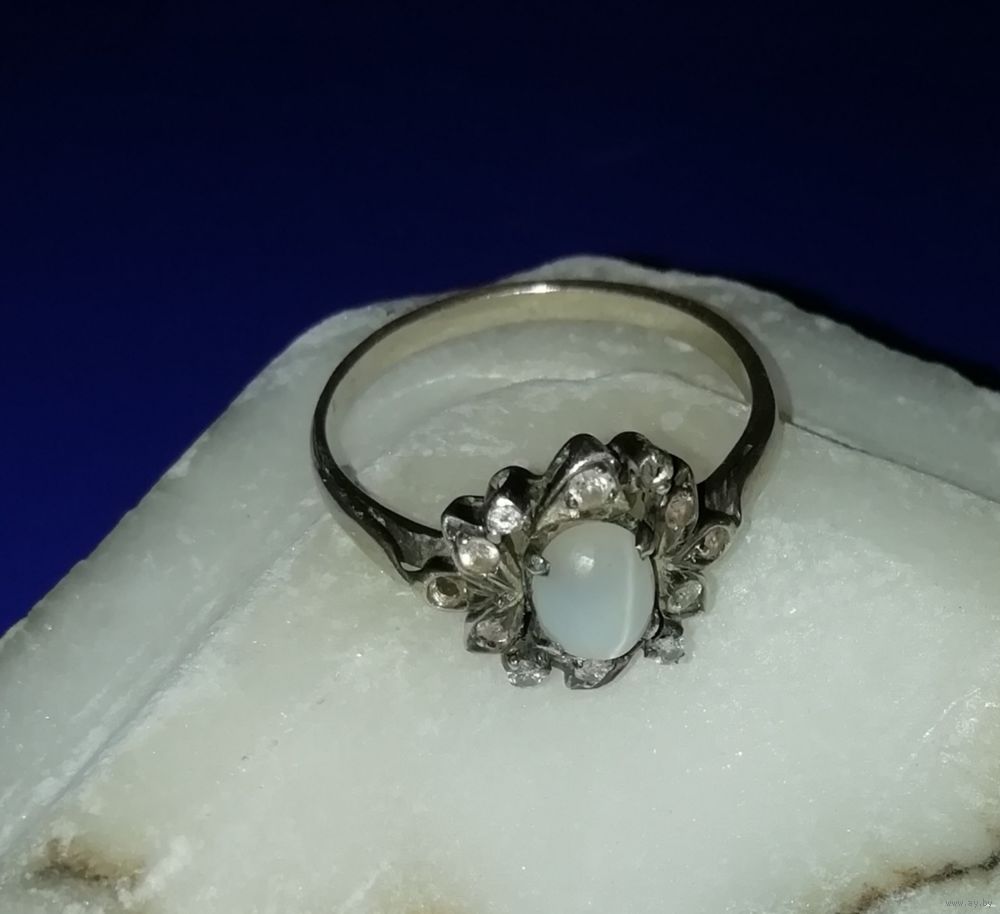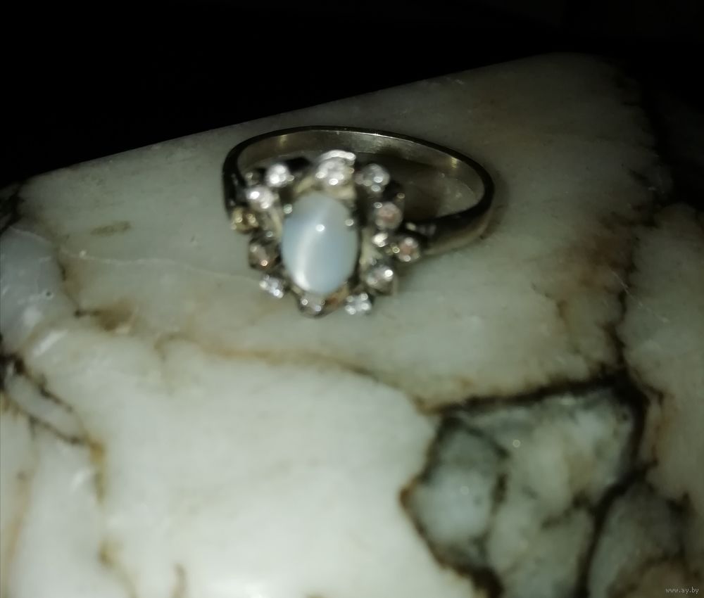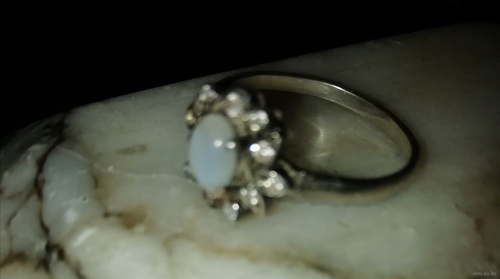 Ручная работа, произведено и куплено в Индии. Центральный камень лунный, вокруг мелкие цирконий. Серебро, без клейма. Оригинальное милое колечко. |