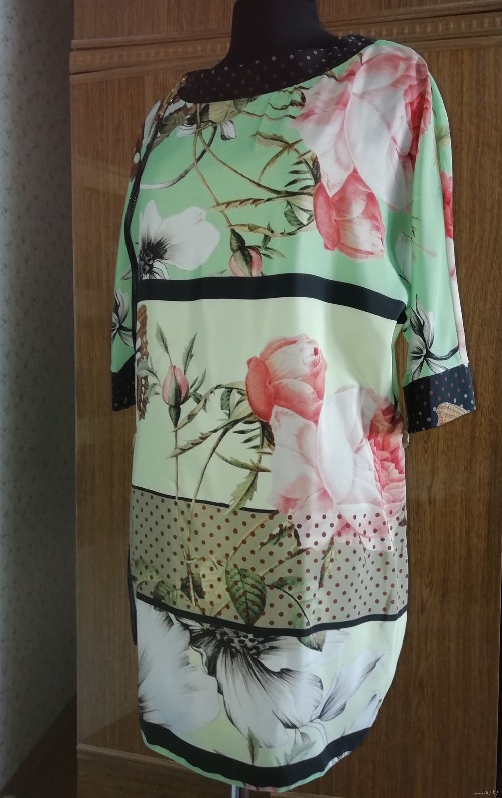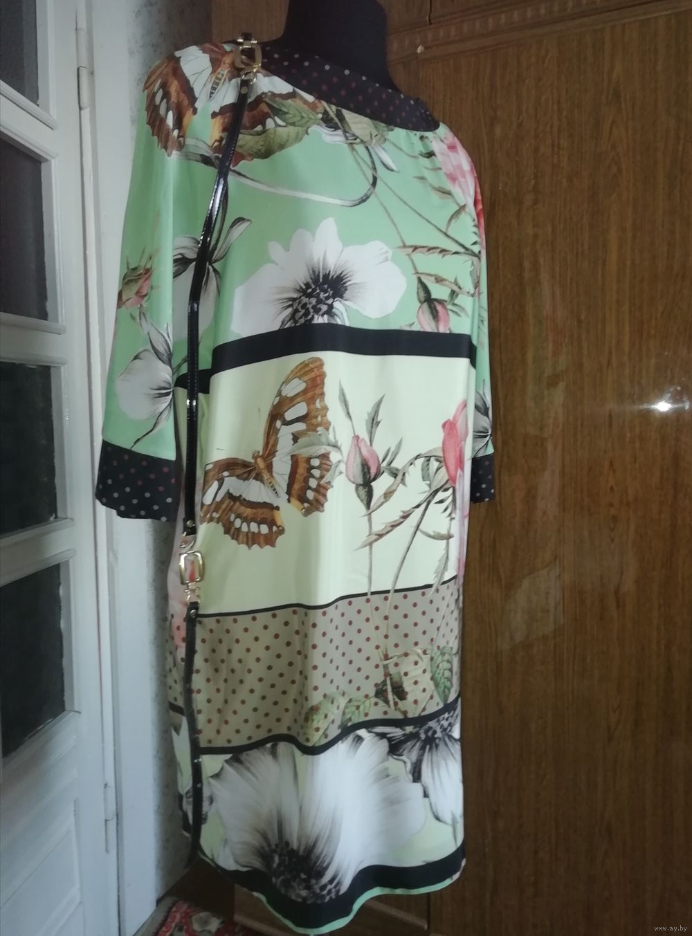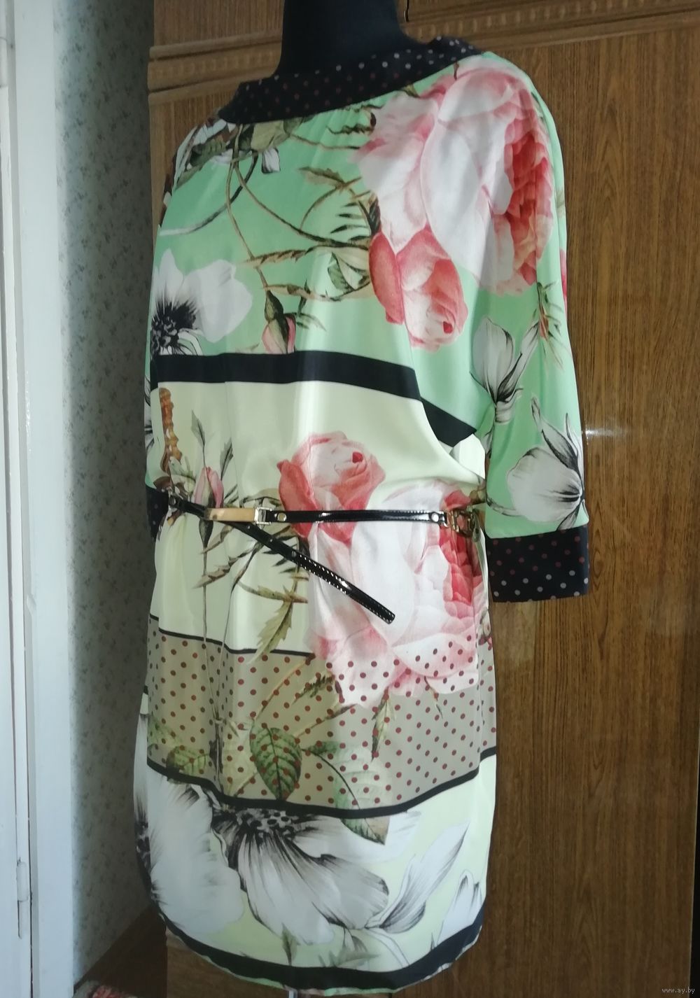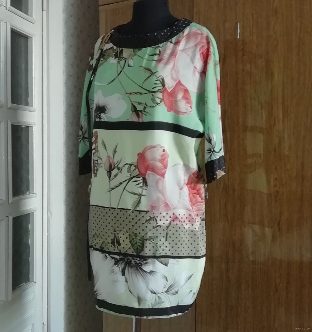 | Платье с красивым рисунком, рукав реглан. Можно как нарядное и летом повседневное. Хорошо с ремешком и без ремешка. Очень приятная расцветка, необычное. | |