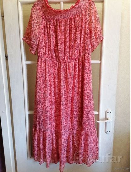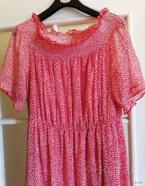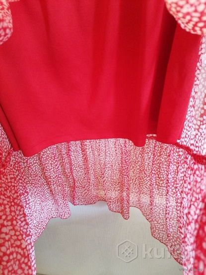 Красивое шёлковое платье, р-р 52-54, как новое, никаких дефектов нет. Полностью на красной подкладке. ПОГ 56см, ПОТ 45см (еще тянется, т.к. вставлена резинка), ПОБ 68см, длина платья 120см, длина юбки от талии 80см, верх на широкой резинке (можно носить с открытыми плечами).