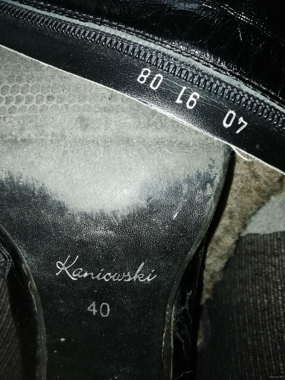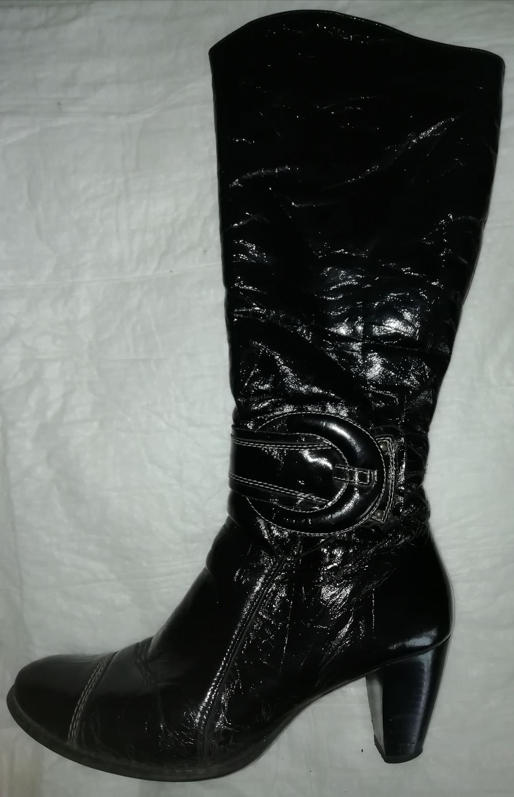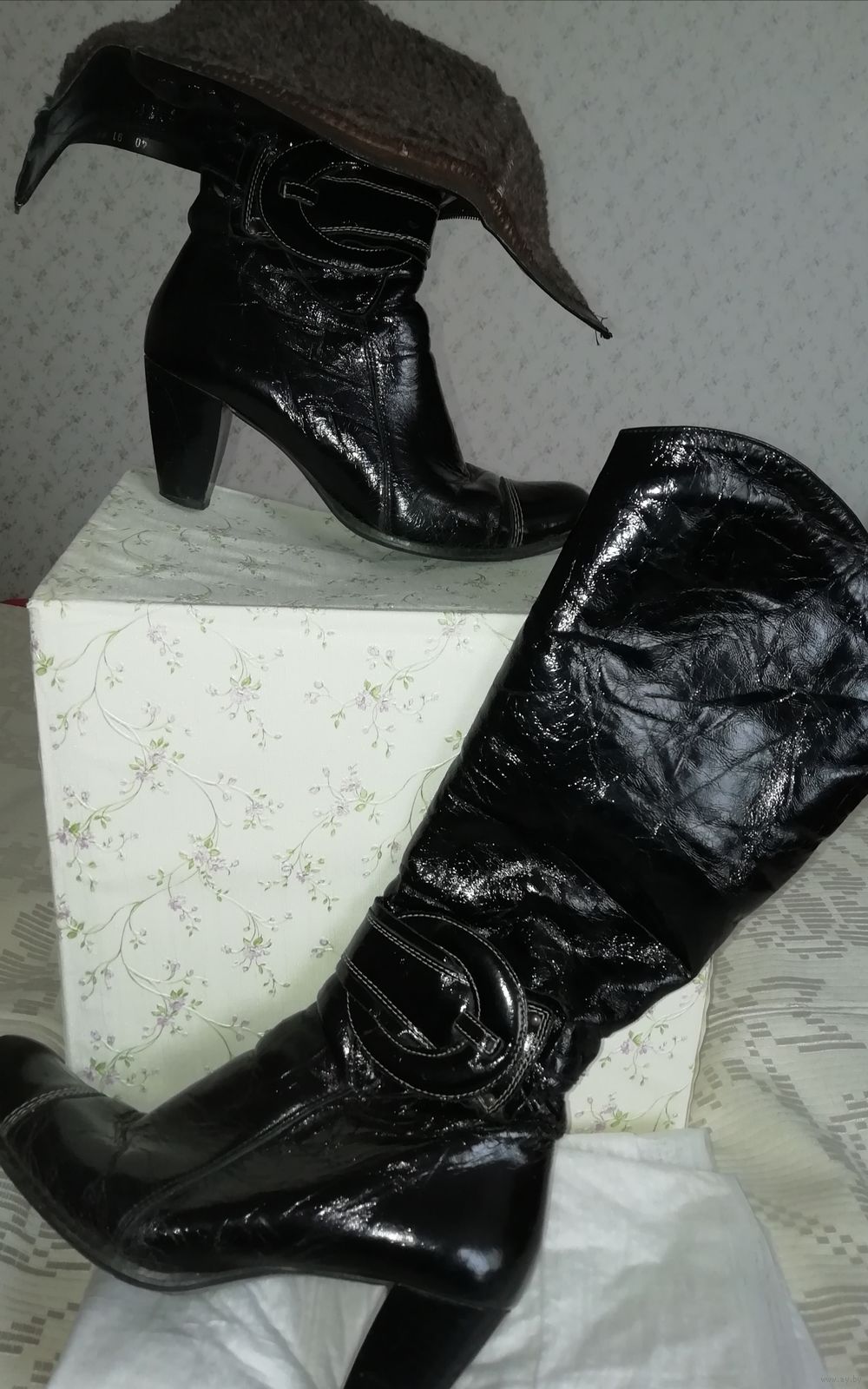| Сапоги из хорошей натуральной кожи, куплены в Польше, теплые. Маркировка 40,но носили на 39 размер. По верхнему краю сапог 39см, каблук 7,4см от пятки, стелька26, 3см,стельки натуральные, на меху. | |