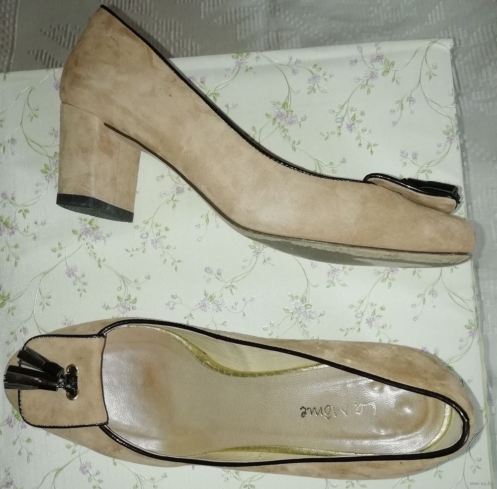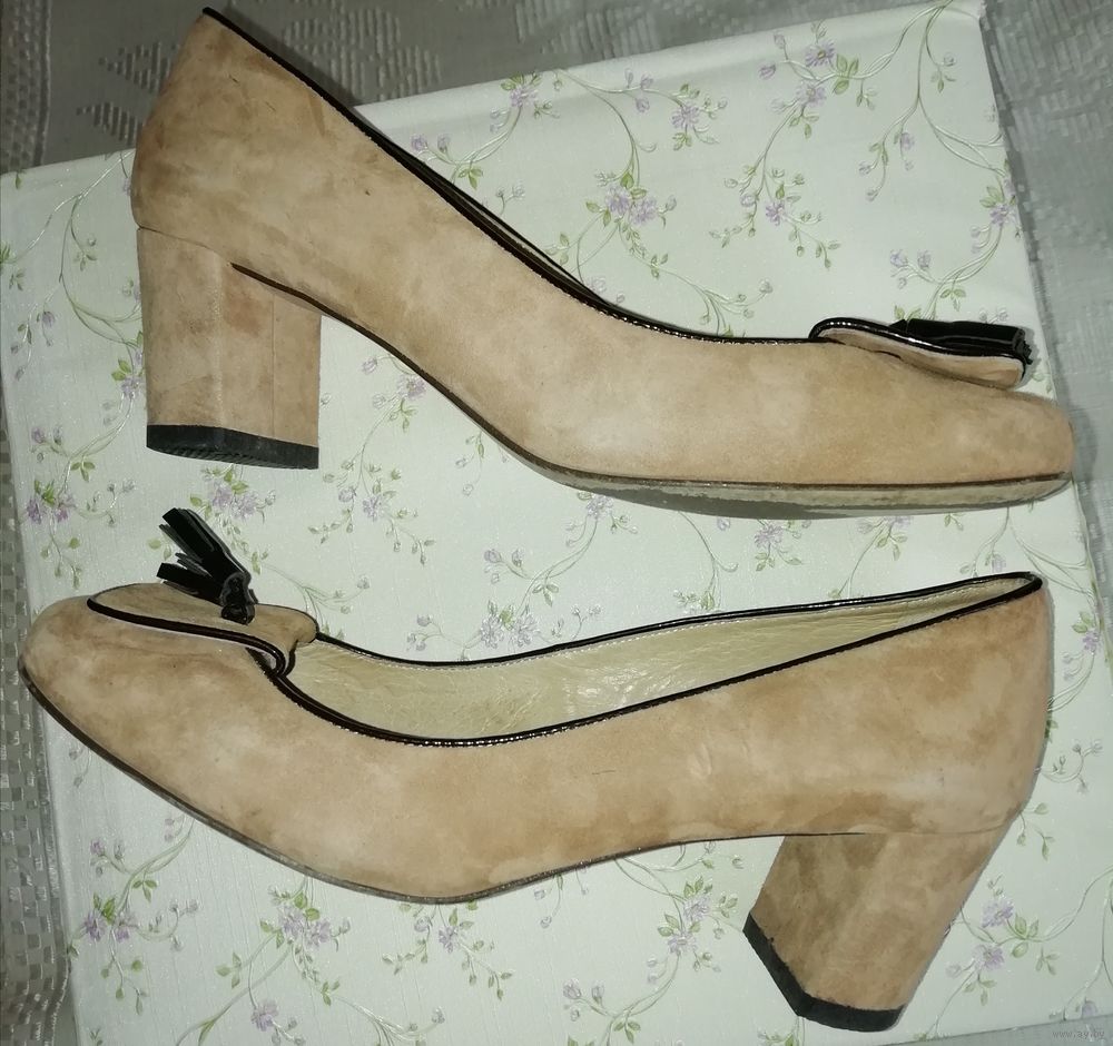 | Очень добротные туфли из натуральной светлой замши, очень устойчивый каблук, смотрятся на ноге великолепно. Могут быть нарядными и повседневными. Стоили дорого и выглядят соответственно. | |