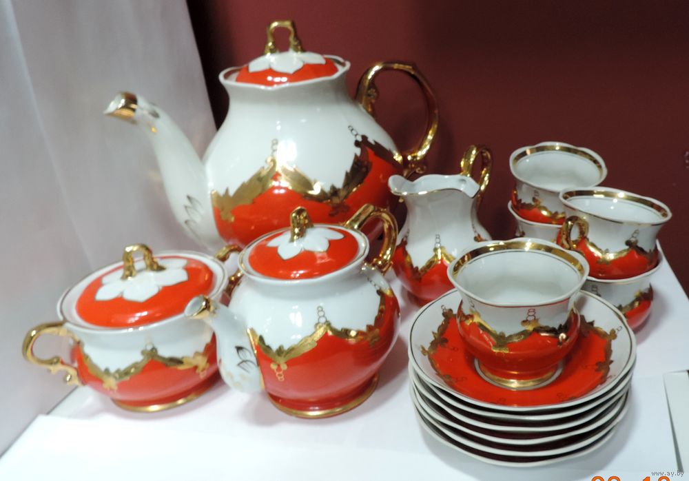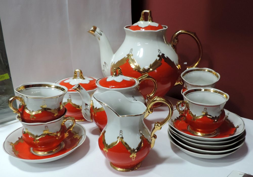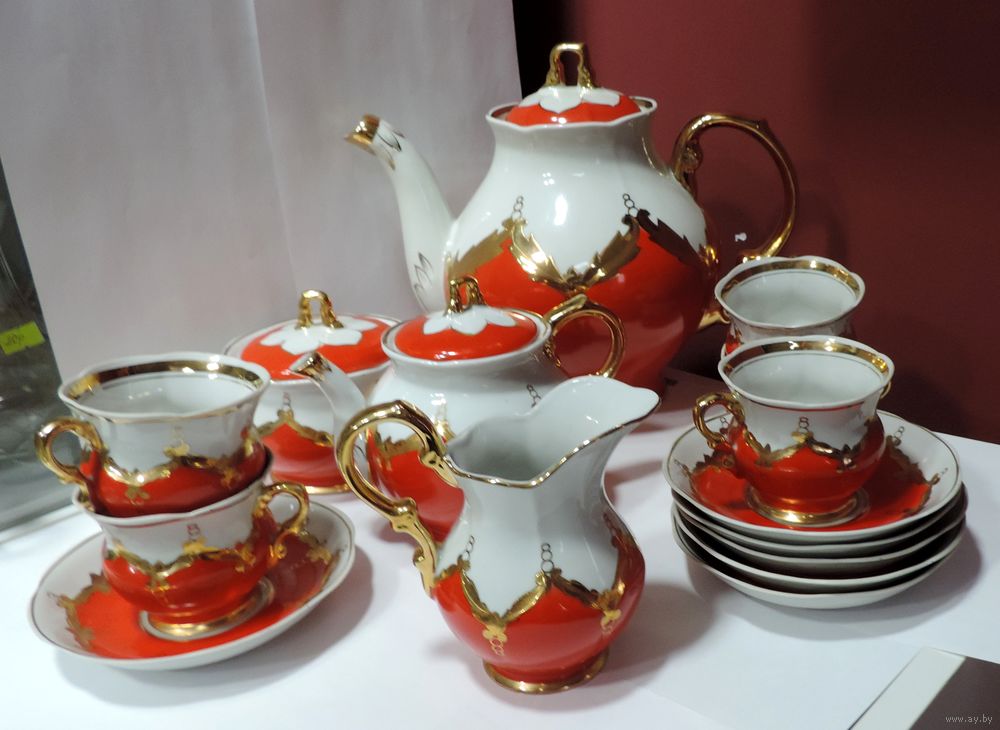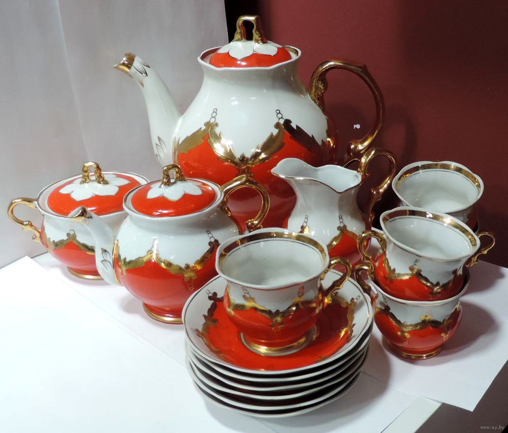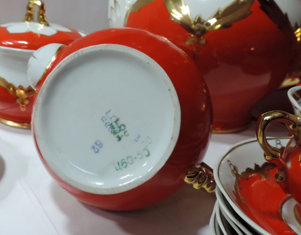 Красивый чайный сервиз 70-е годы СССР. - 15 предметов. Чайник большой на 2 литра, чайник малый, сливочник, сахарница, тарелки - 6 шт., чашки - 5 шт.