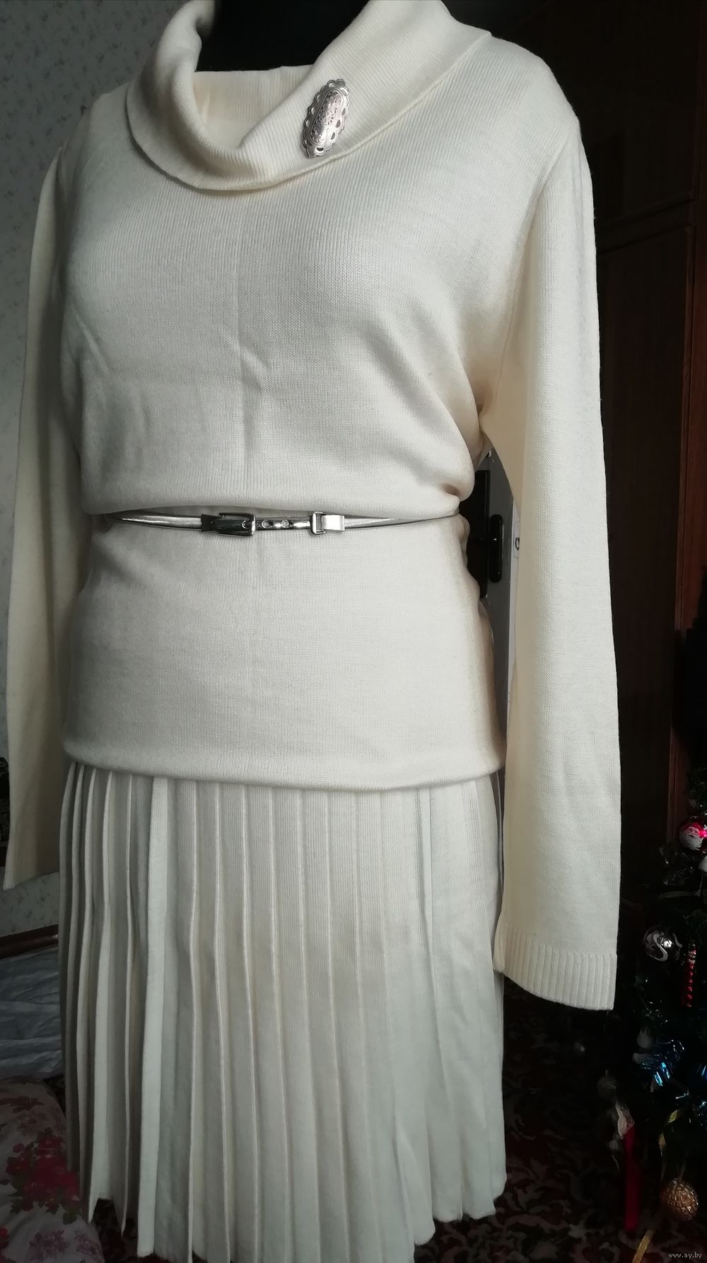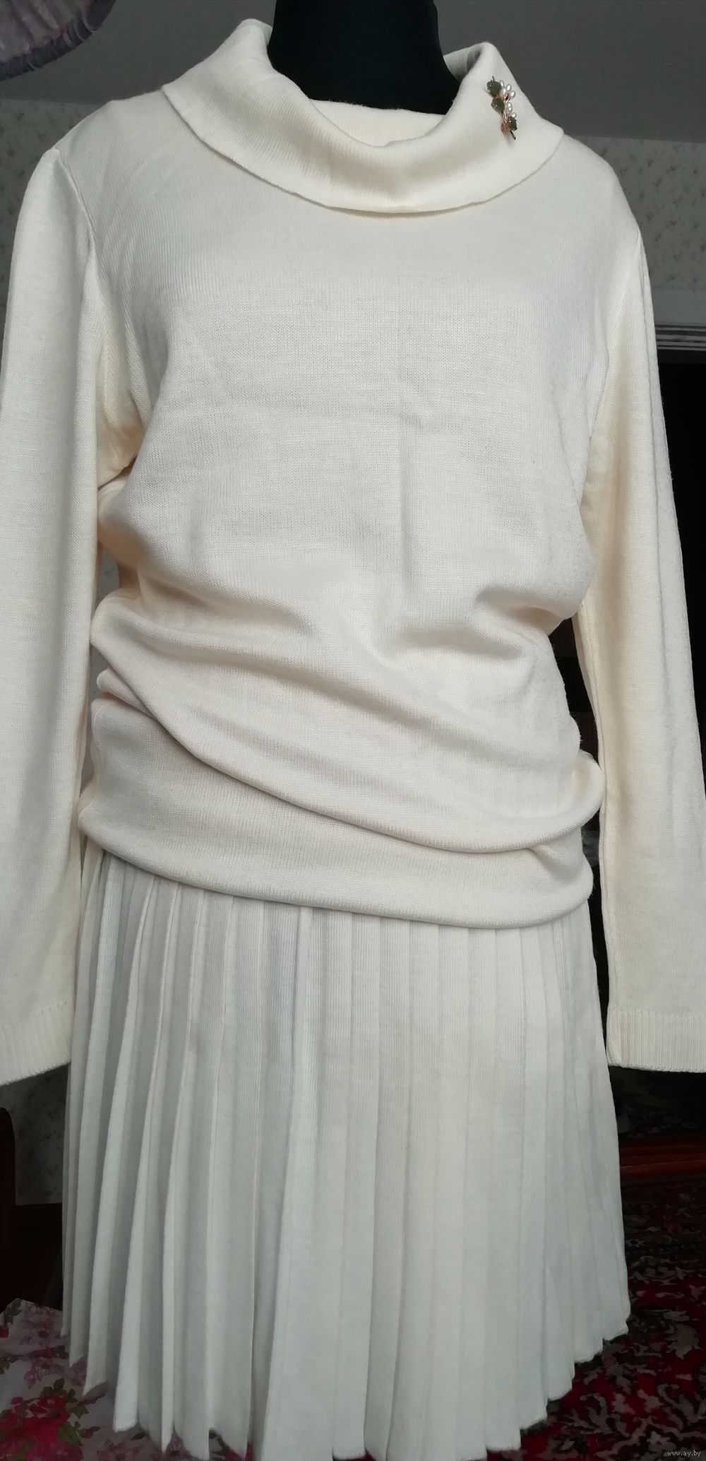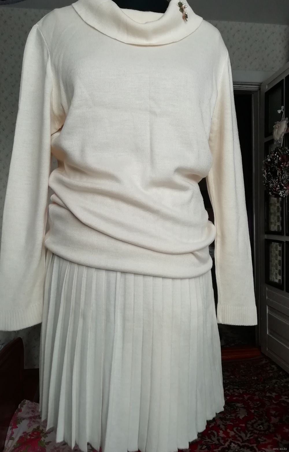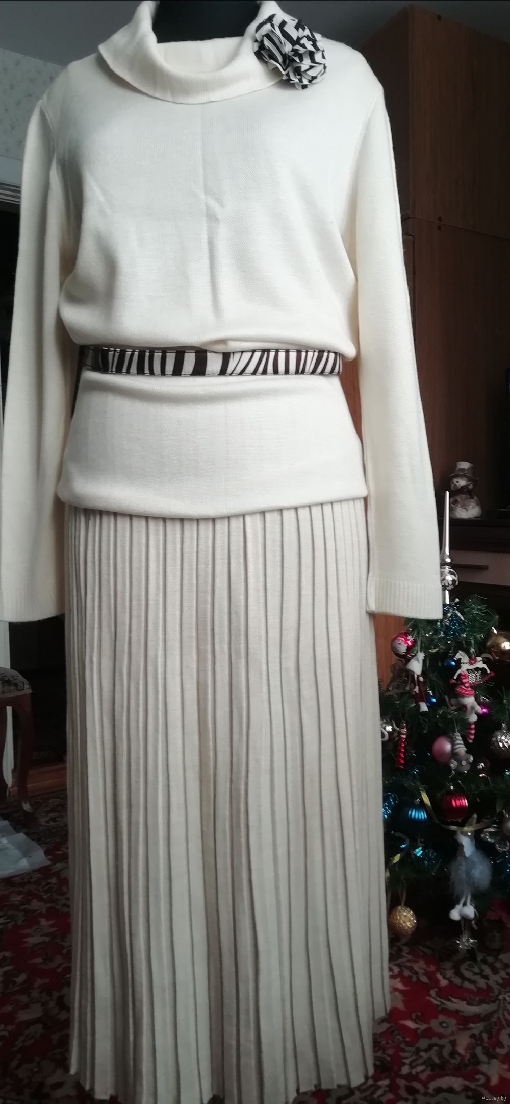 Нежный трикотаж, хорошо сочетаемый с различными аксесуарами. Юбки выполнены в двух вариантах длинны:длинная-88см,короткая-53 см, джемпер-78см.Все прекрасно сочетаются. Размер регулируется(юбки на широкой резинке).