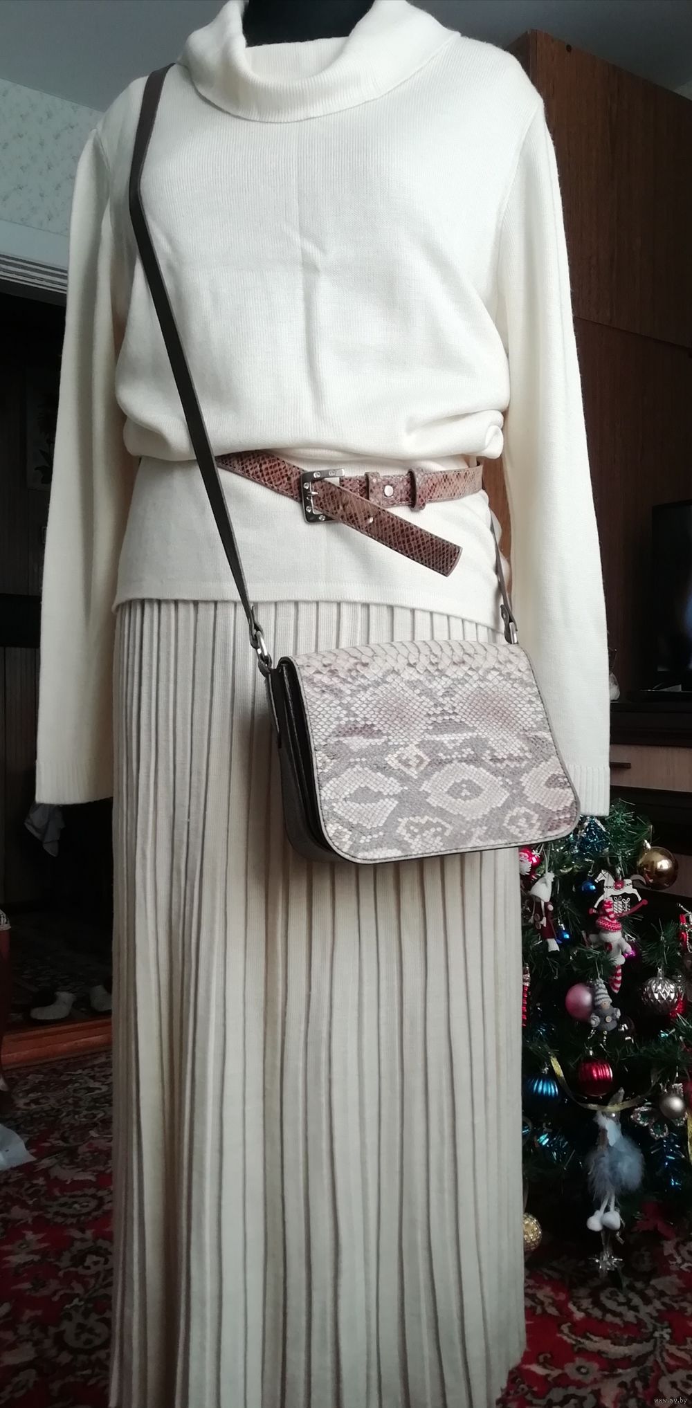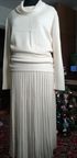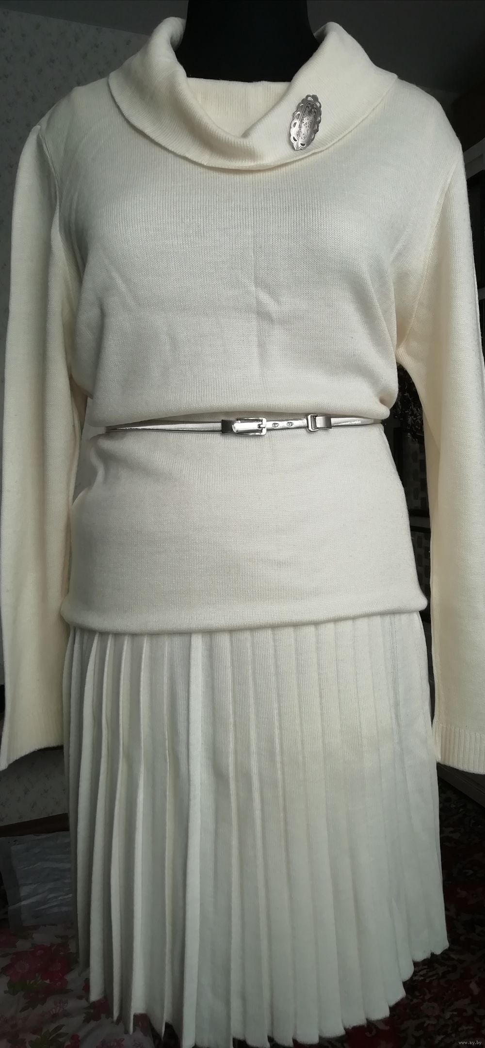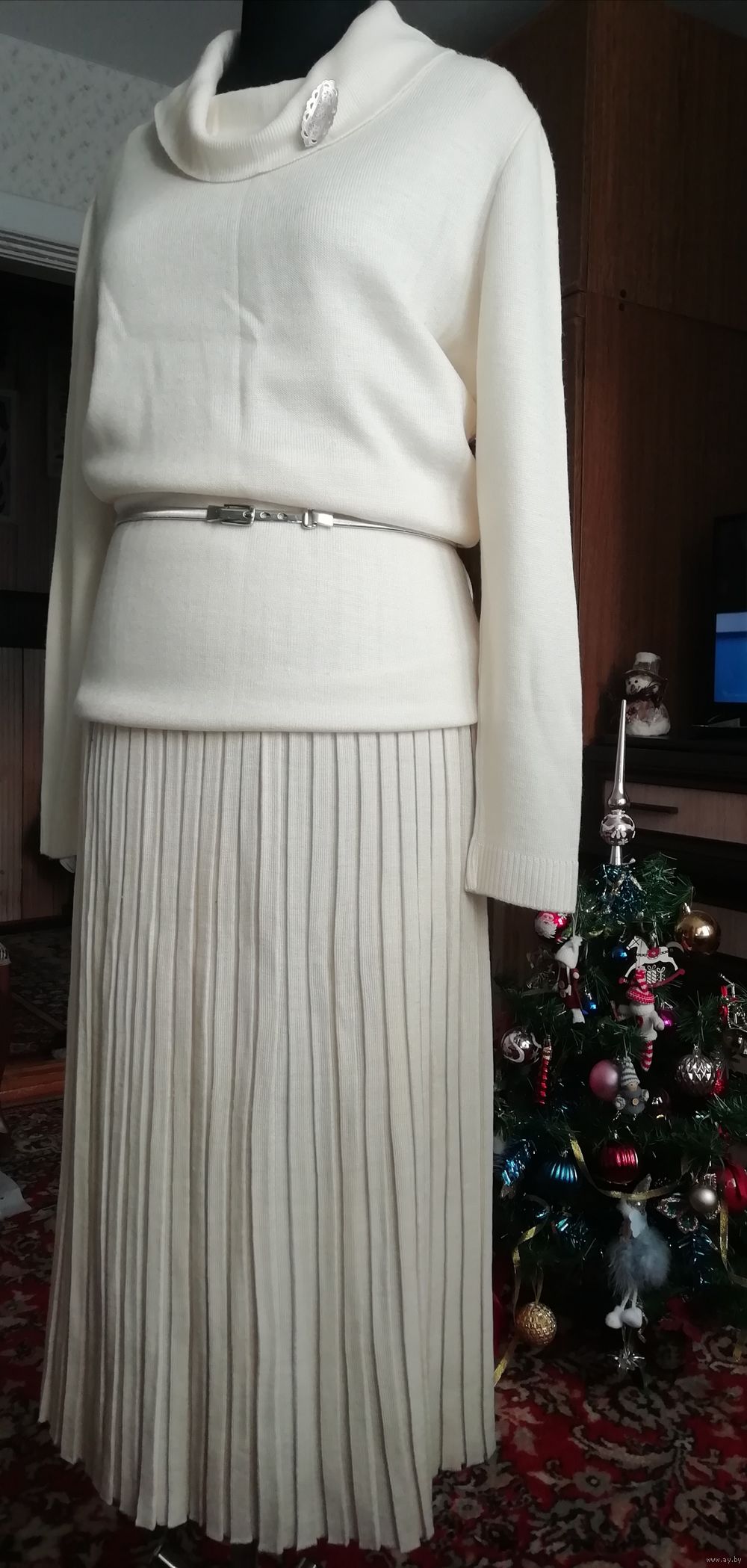 Нежный трикотаж, хорошо сочетаемый с различными аксесуарами. Юбки выполнены в двух вариантах длинны:длинная-88см,короткая-53 см, джемпер-78см.Все прекрасно сочетаются. Размер регулируется(юбки на широкой резинке).