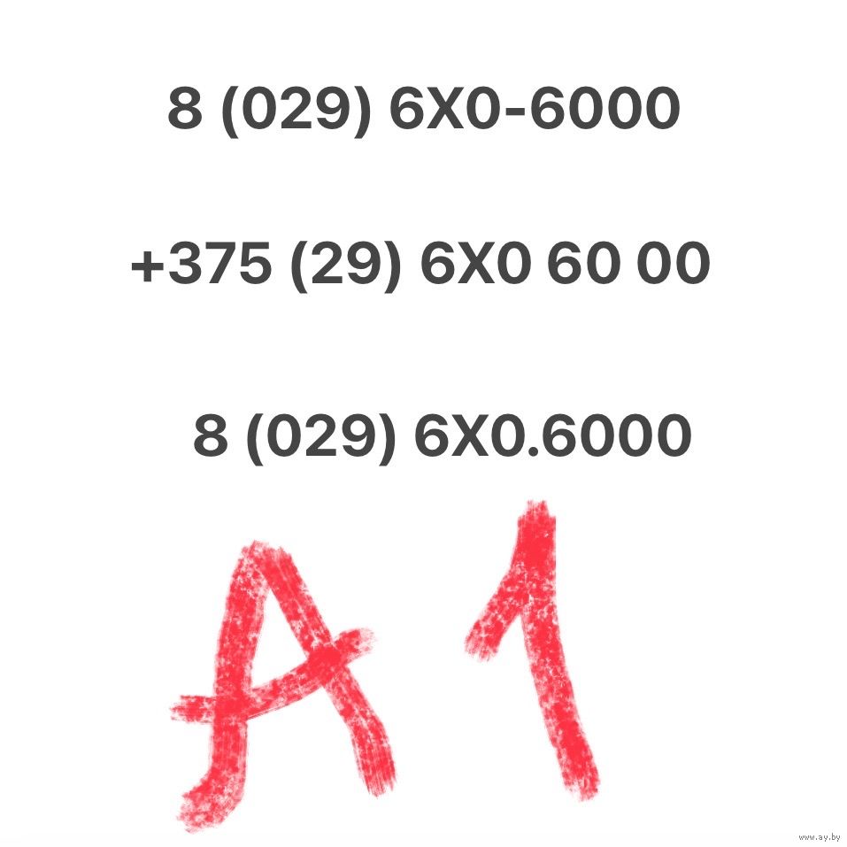 Красивый номер А1 (29) 6X0-6000. В рекламе не был. Переоформление в офисе А1.