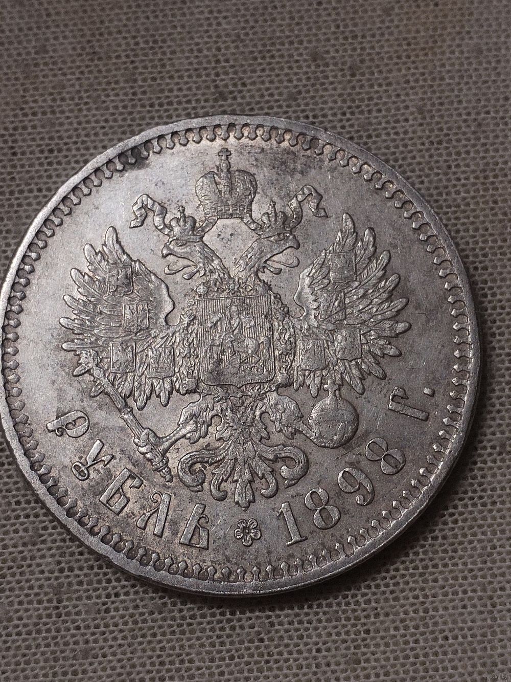 красивый рубль 1898 г, времен правления Николая 2 ,находиться в том состоянии в котором был найден , очень красивый ,живой реверс ,при дневном свете есть блеск ,гурт не битый ,также живой .Hа аверсе есть небольшие царапины ,но усы ,ухо ,борода ,волосы в хорошем чекане, в целом рубль достойный альбома !!! Звоните, пишите буду рад ответить на ваши вопросы!