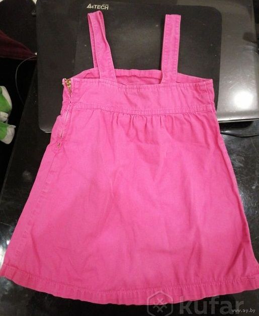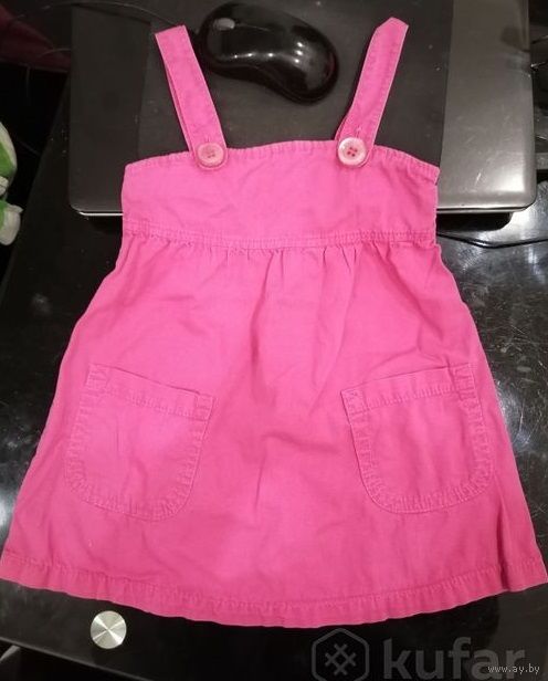 Красивый сарафанчик для девочки на 1,5 - 4 года. Х/б 100%. Состояние отличное, без дефектов, носили пару раз за один сезон и постирали. Длина со шлейками 49см, ПОГ и ПОТ 26см, ПОБ 39см. Сбоку вставлена молния 12см, спереди 2 карманчика.