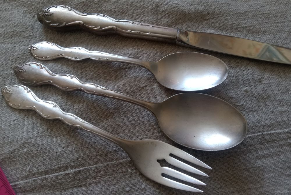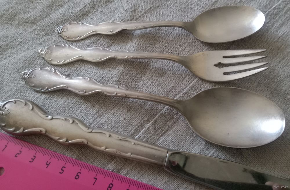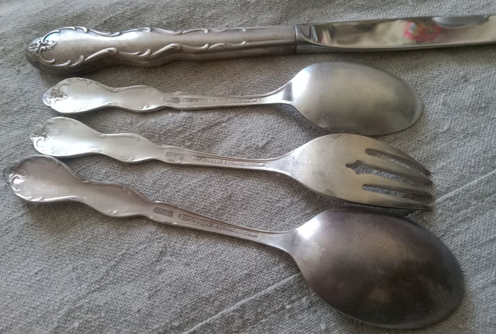 Красивый столовый набор, 4 предмета, покрытие серебром. Швеция.