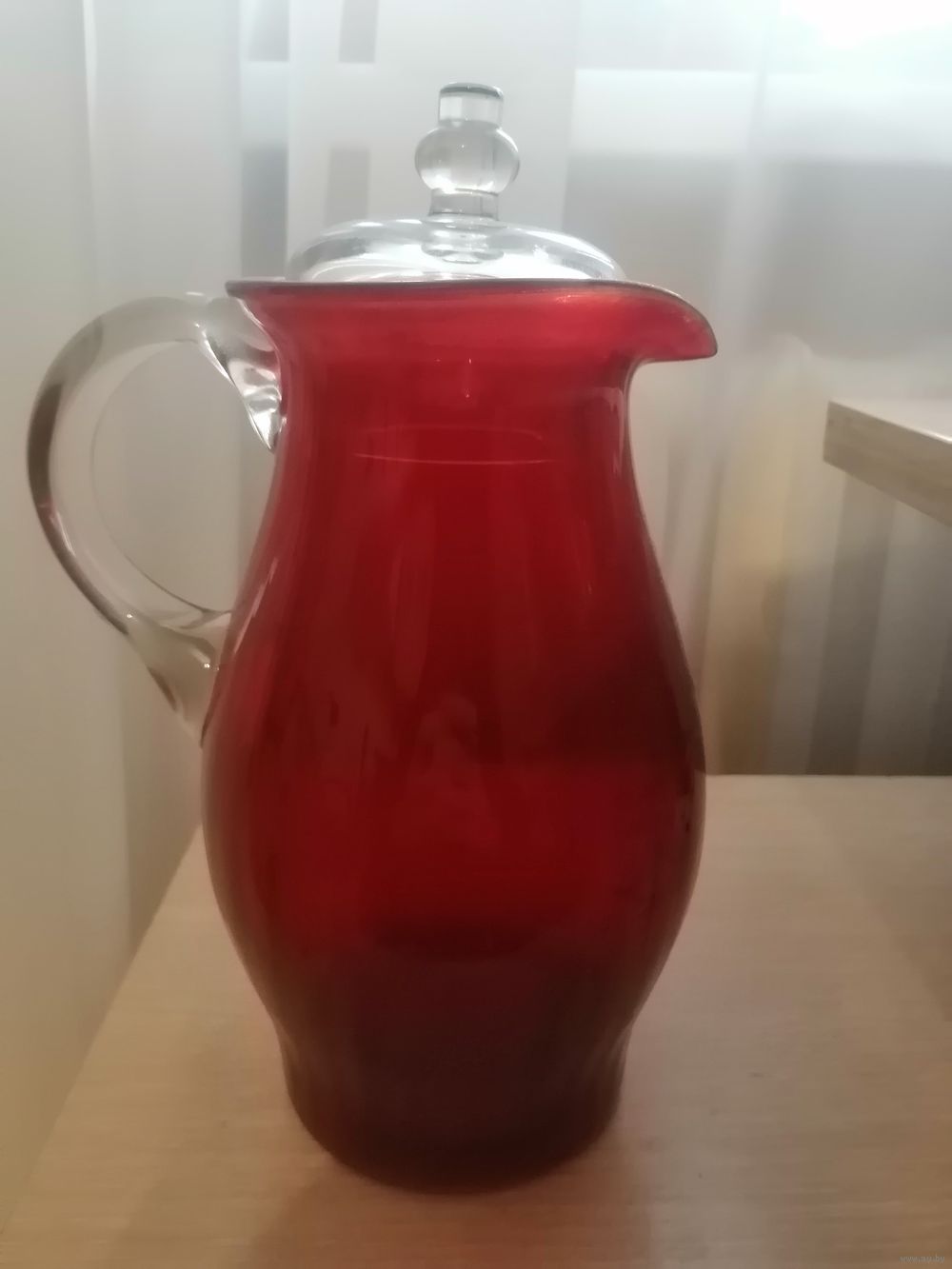 Кувшин из красного стекла. Состояние идеальное, сколов нету. Могу отправить любой почтой. Цена 15р