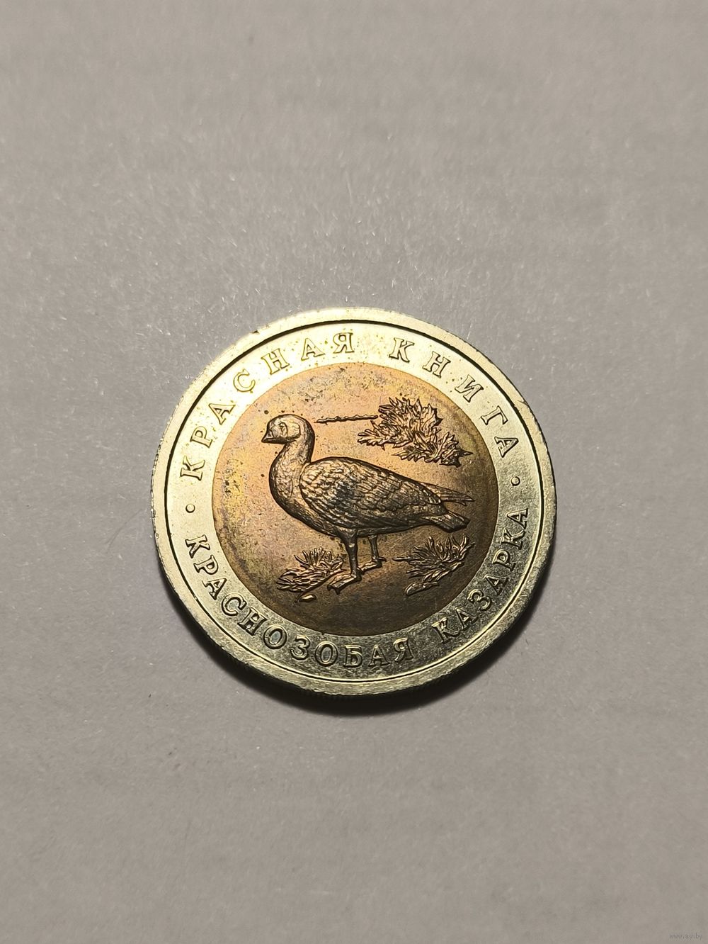 Краснозобая казарка. 10 рублей 1992. Не чищена.